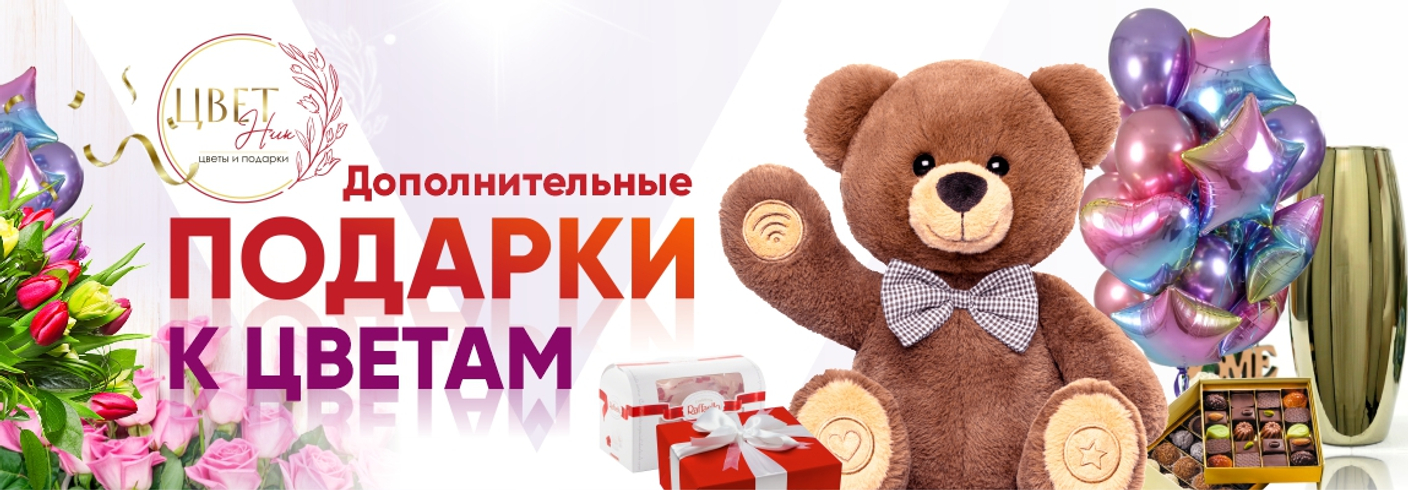 Подарки: гелиевые шары, мягкие медведи и конфеты (Raffaello, Ferrero).