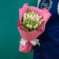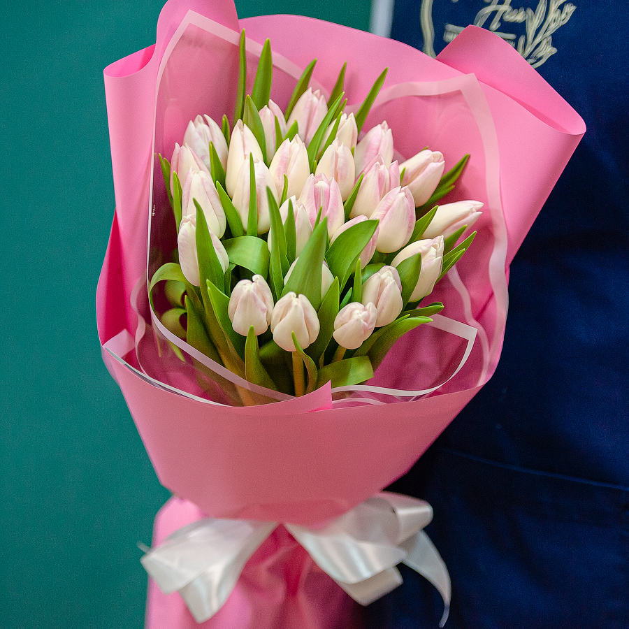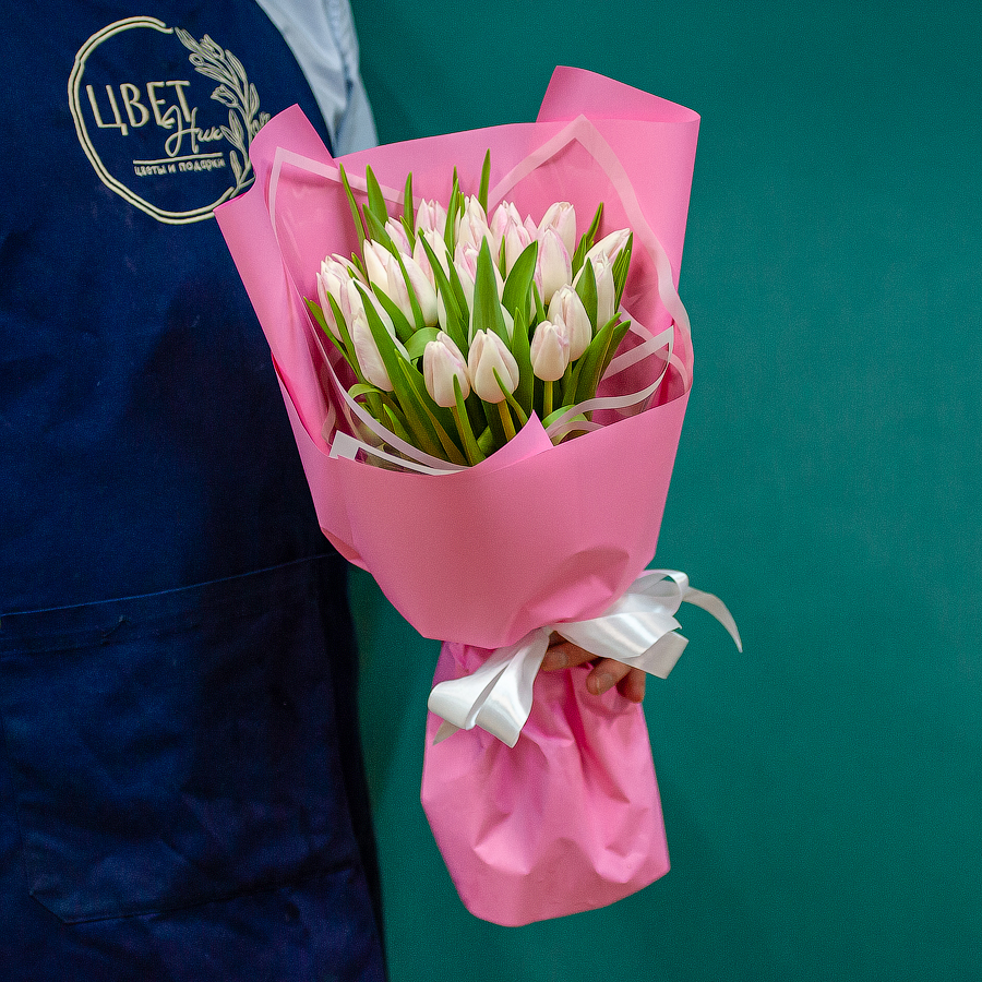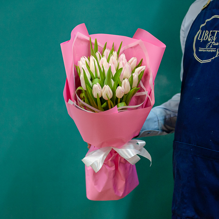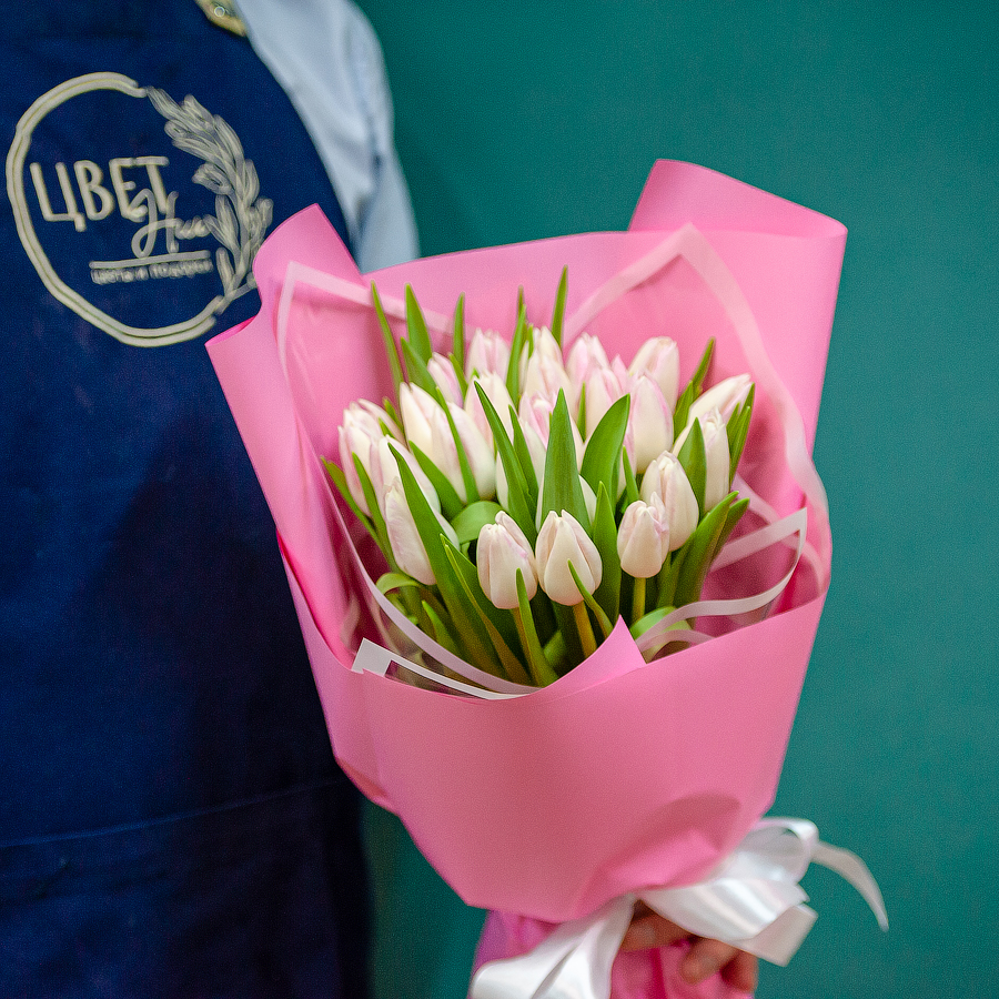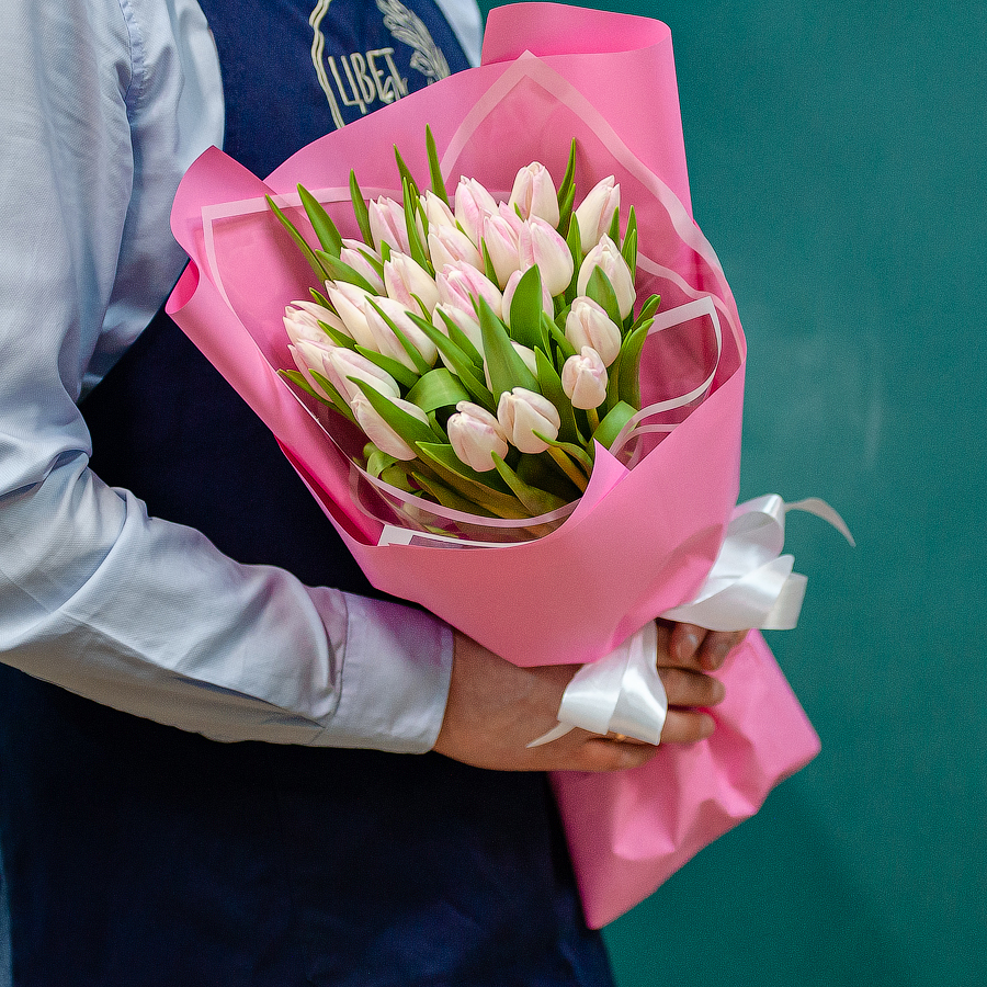 Бело-розовые тюльпаны в оформлении