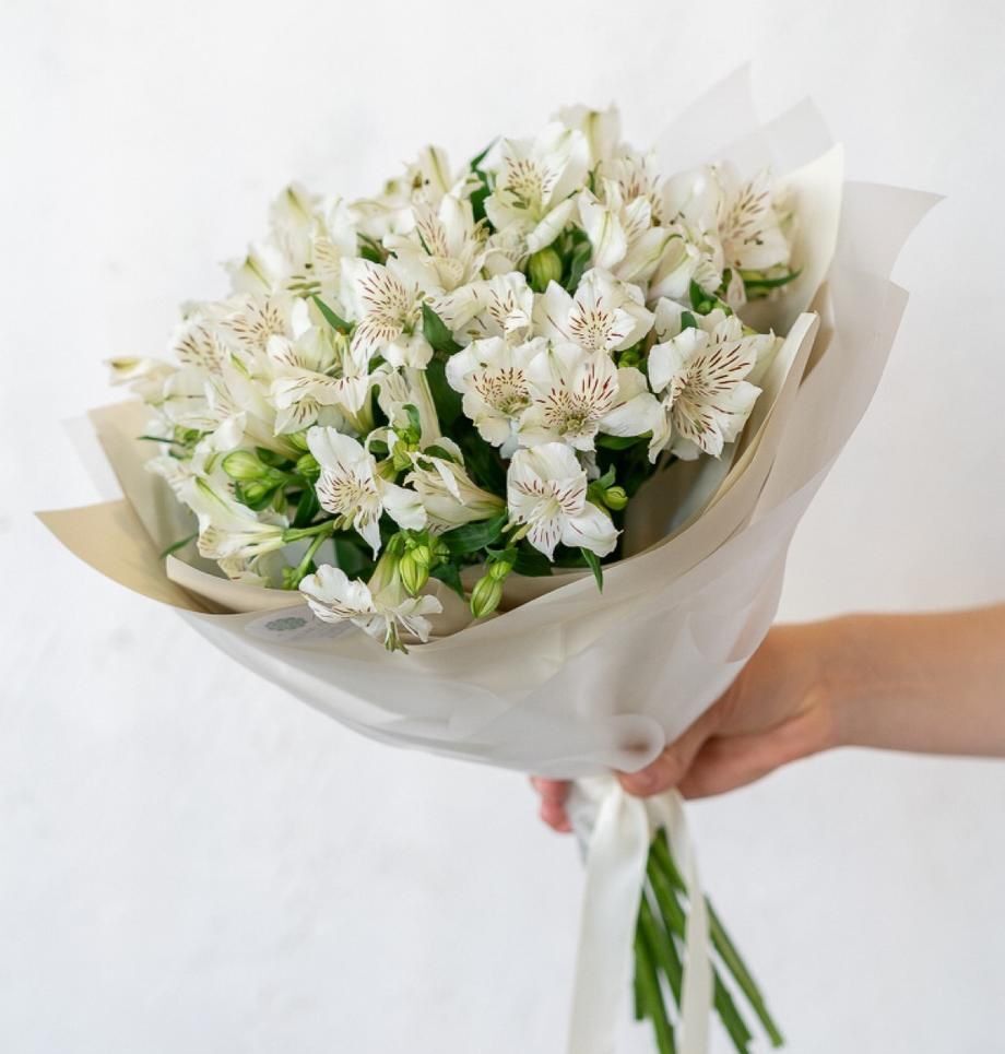 Монобукет из 11 белых альстромерий в нежной легкой упаковке