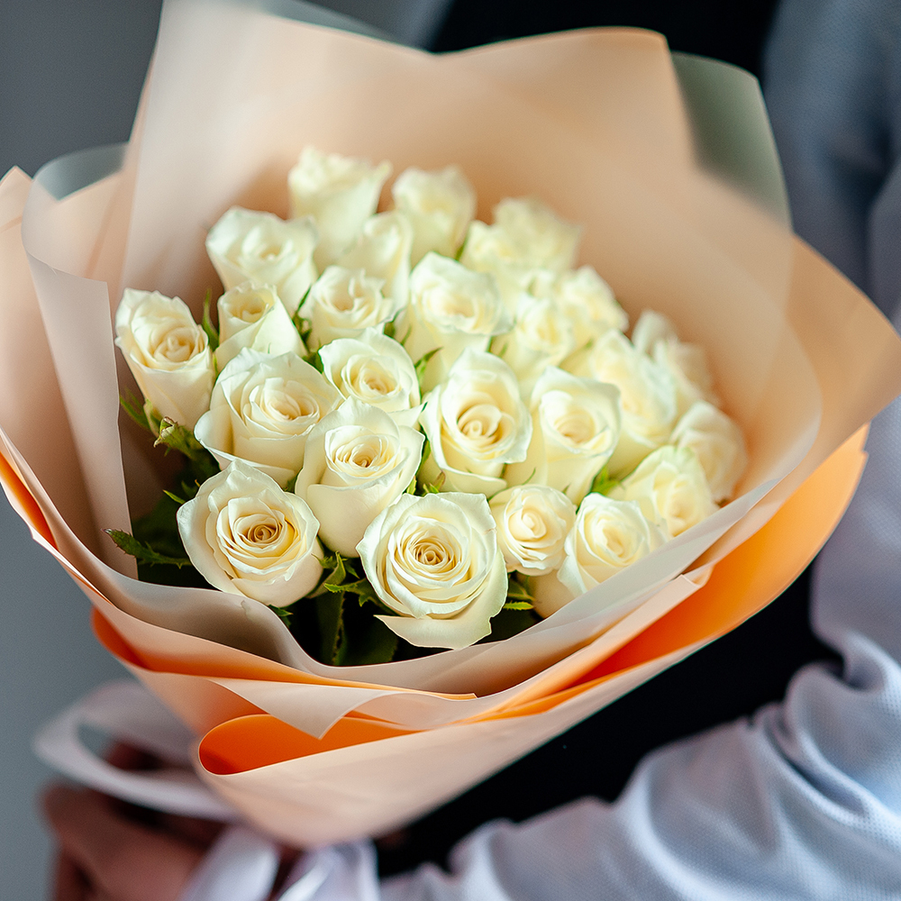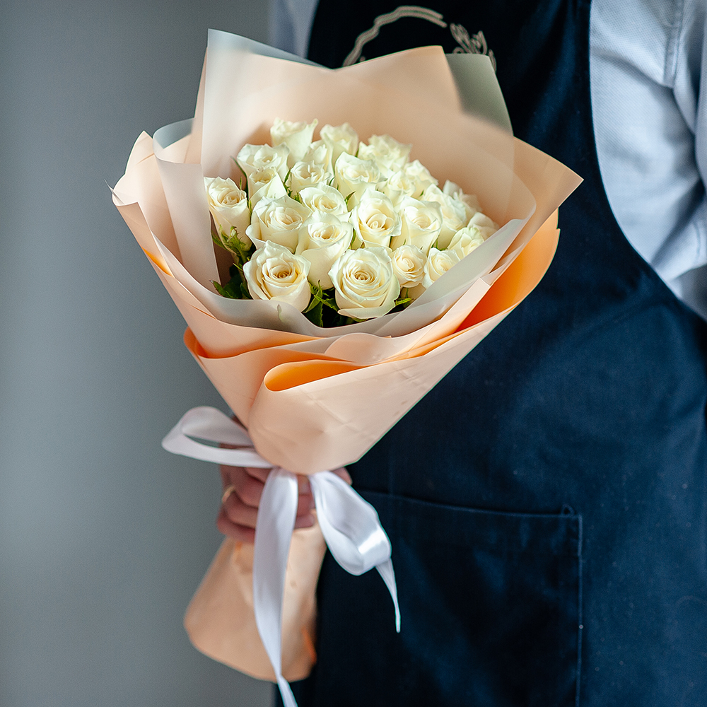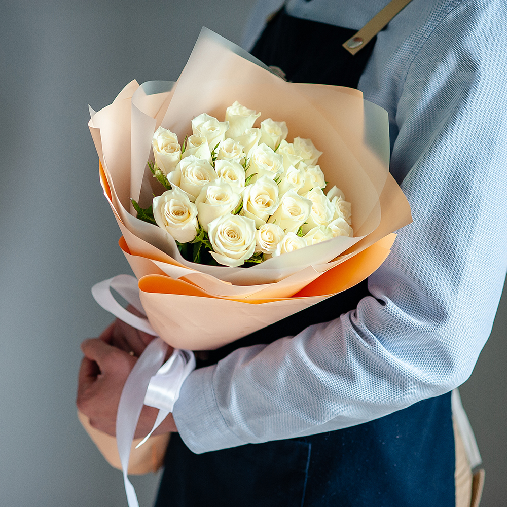 Монобукет "Цветник" - это изысканный и стильный подарок, который станет незабываемым сюрпризом для любого случая. Букет состоит из 25 кенийских роз белого цвета, каждая из которых имеет длину 40 см. Такой выбор цветов подчеркнет вашу заботу и внимание к деталям. Букет упакован в матовую пленку, которая придает ему элегантный и современный вид. В качестве дополнительного украшения используются атласные ленты, которые придают букету еще больше шарма и элегантности. Монобукет "Цветник" имеет размер S, что делает его удобным для транспортировки и хранения. Высота букета составляет 40 см