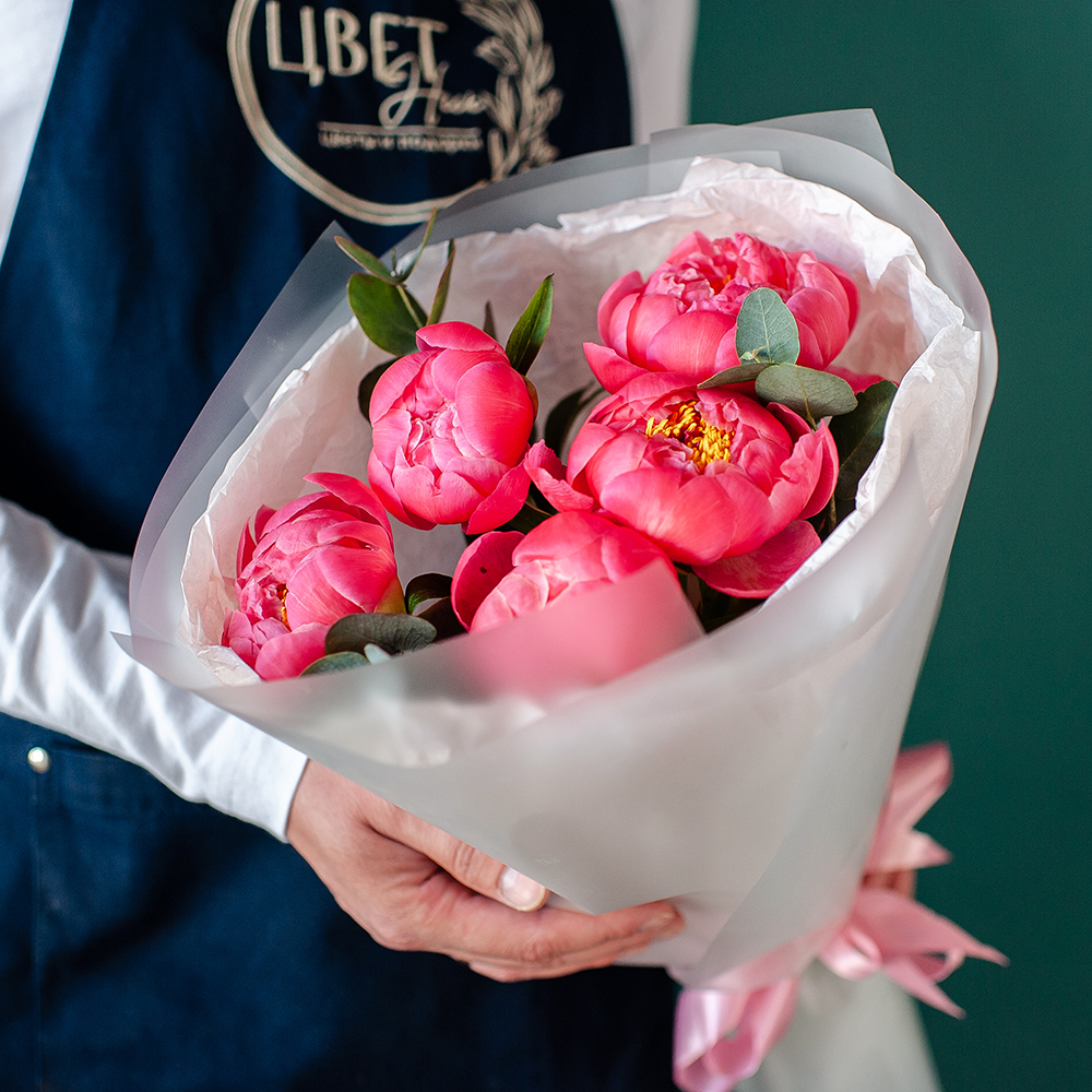 Букет пионов Coral Charm Яркий, элегантный и по-настоящему чарующий букет пионов Coral Charm — идеальный выбор для особого случая или просто чтобы подарить радость близкому человеку! Пионы этого сорта поражают своей нежной окраской: от насыщенного кораллового при распускании до мягкого персиково-розового оттенка со временем. Их нежные лепестки, легкий аромат и роскошный объем создают невероятное настроение. ?? Состав: - Пионы Coral Charm - Декоративная зелень - Стильная упаковка с атласной лентой ?? Доставка по г. Рязань — быстро, удобно и с заботой о каждом клиенте. ?? Закажите сейчас и порадуйте себя или своих близких великолепными цветами! ? Подарите красоту и радость вместе с нами! ?
