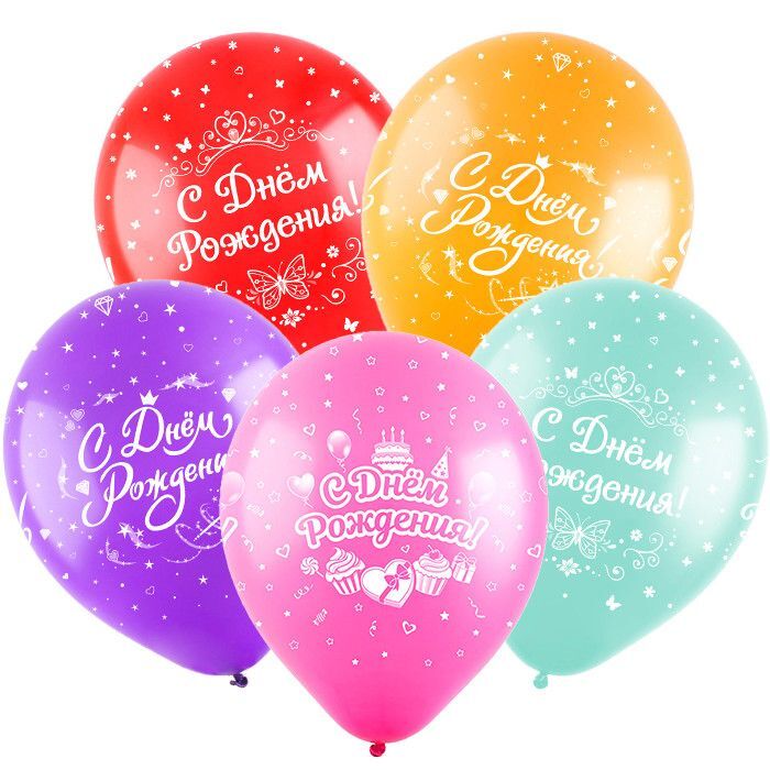 5 шаров микс "C днем рождения"
