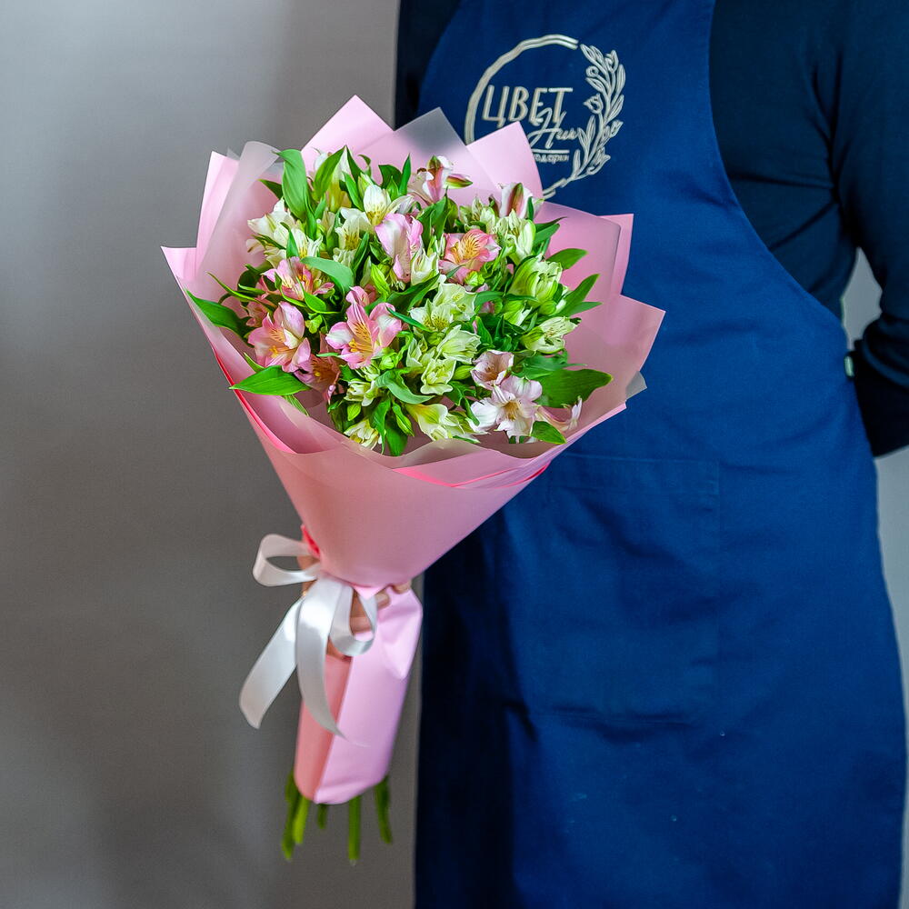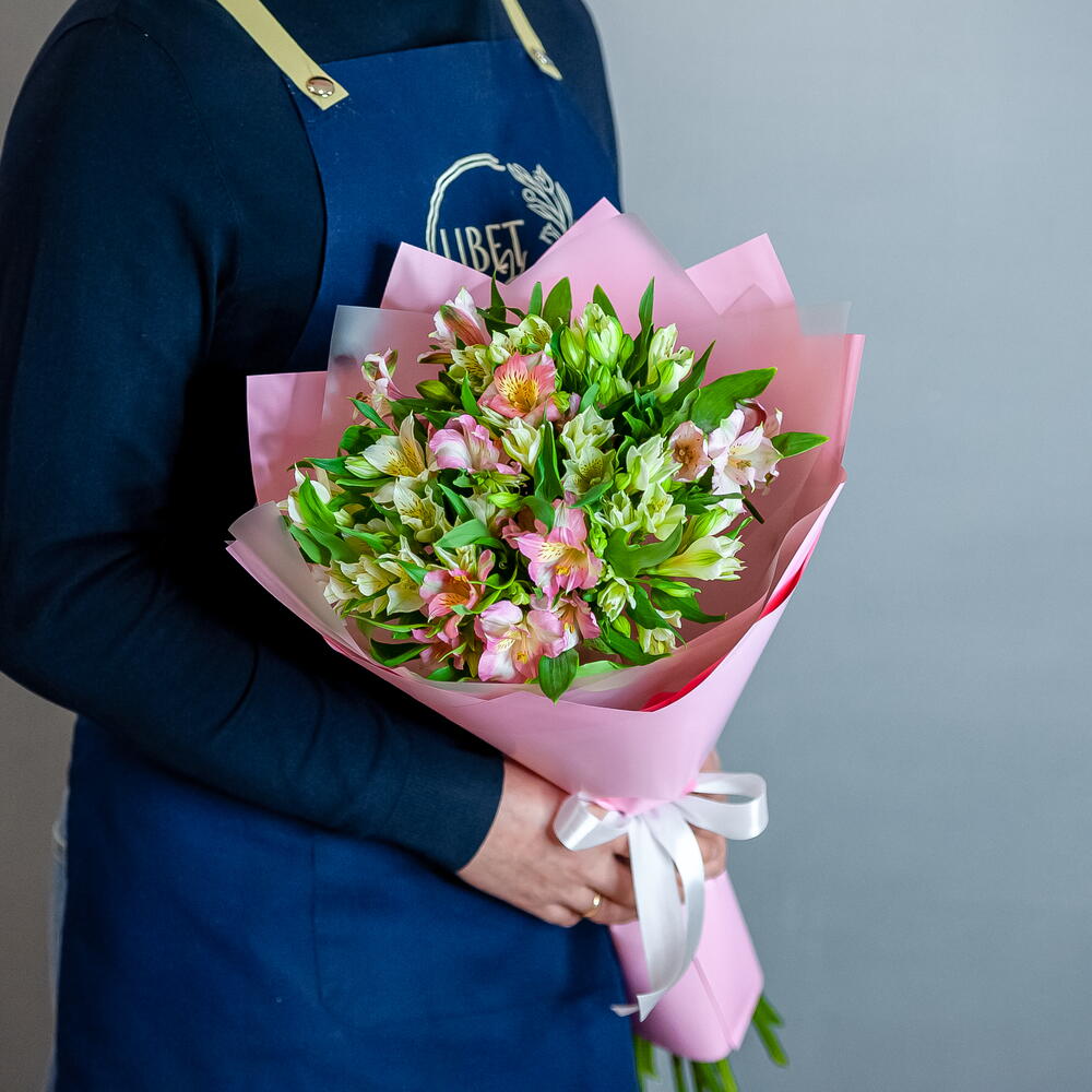 Альстромерия - 11 шт упак 50 - 2 шт упак 100 - 2 шт лента атлас - 2 шт