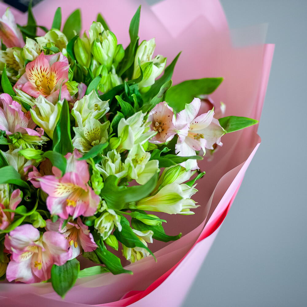 Монобукет из альстромерии в розовом оформлении
