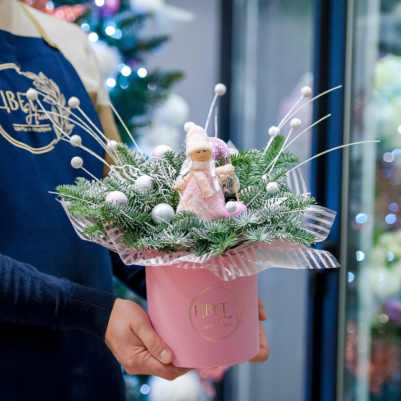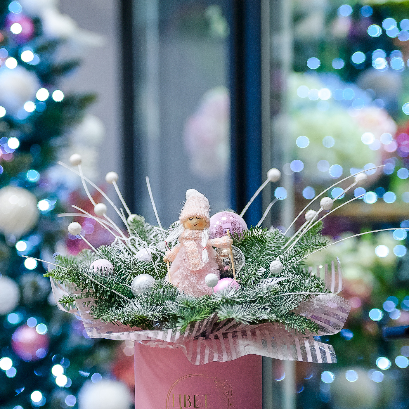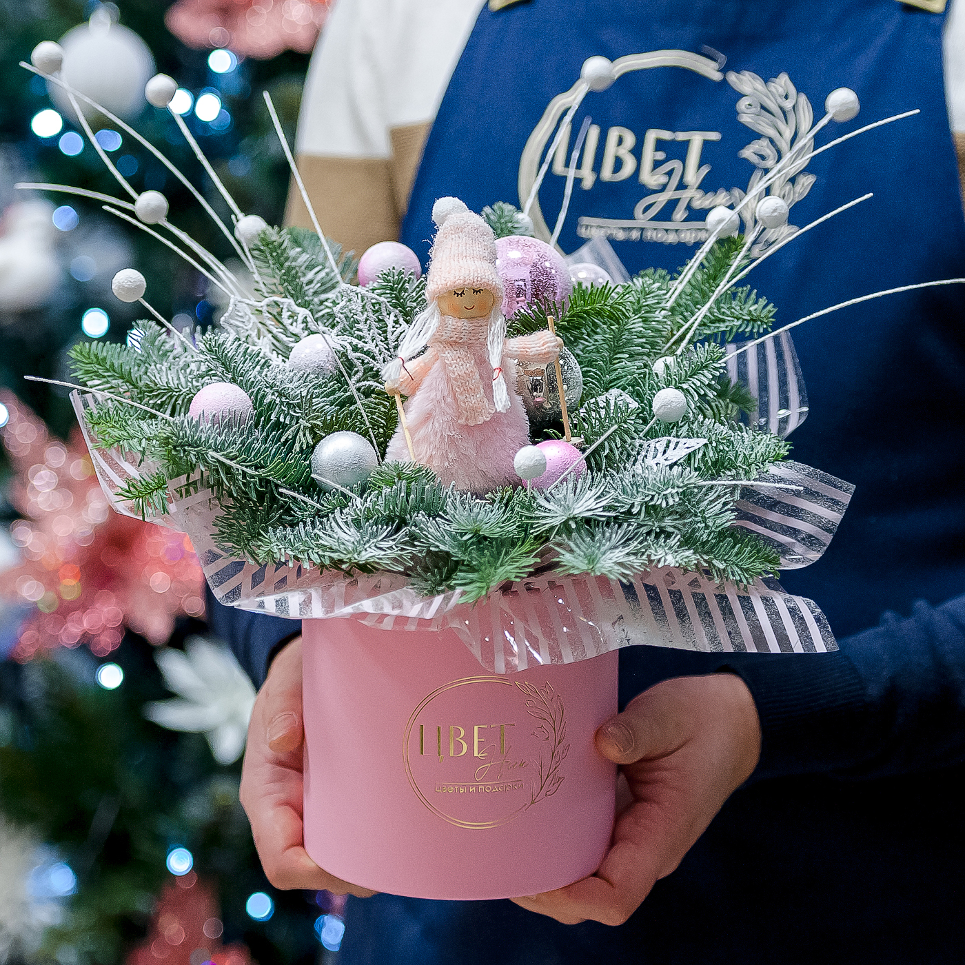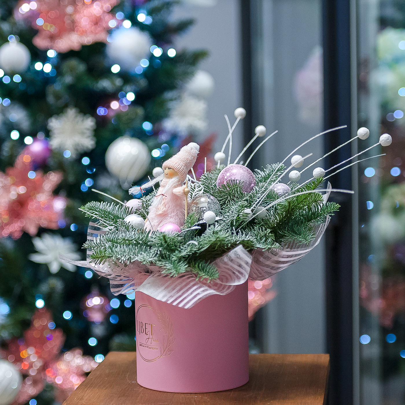 Нежная розовая композиция с нобилисом в шляпной коробке