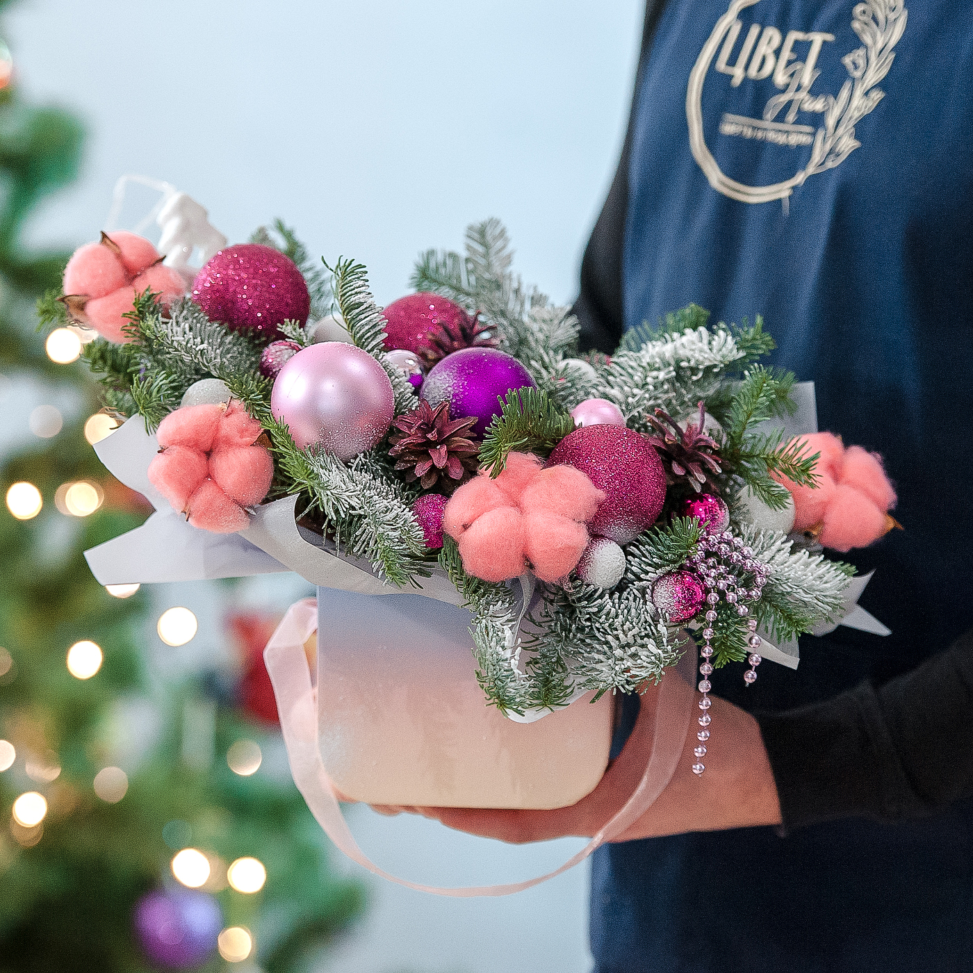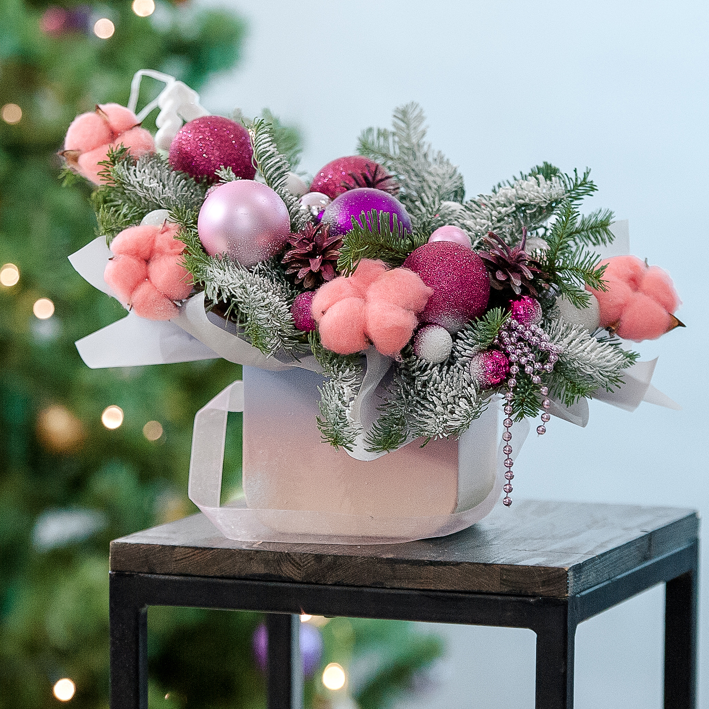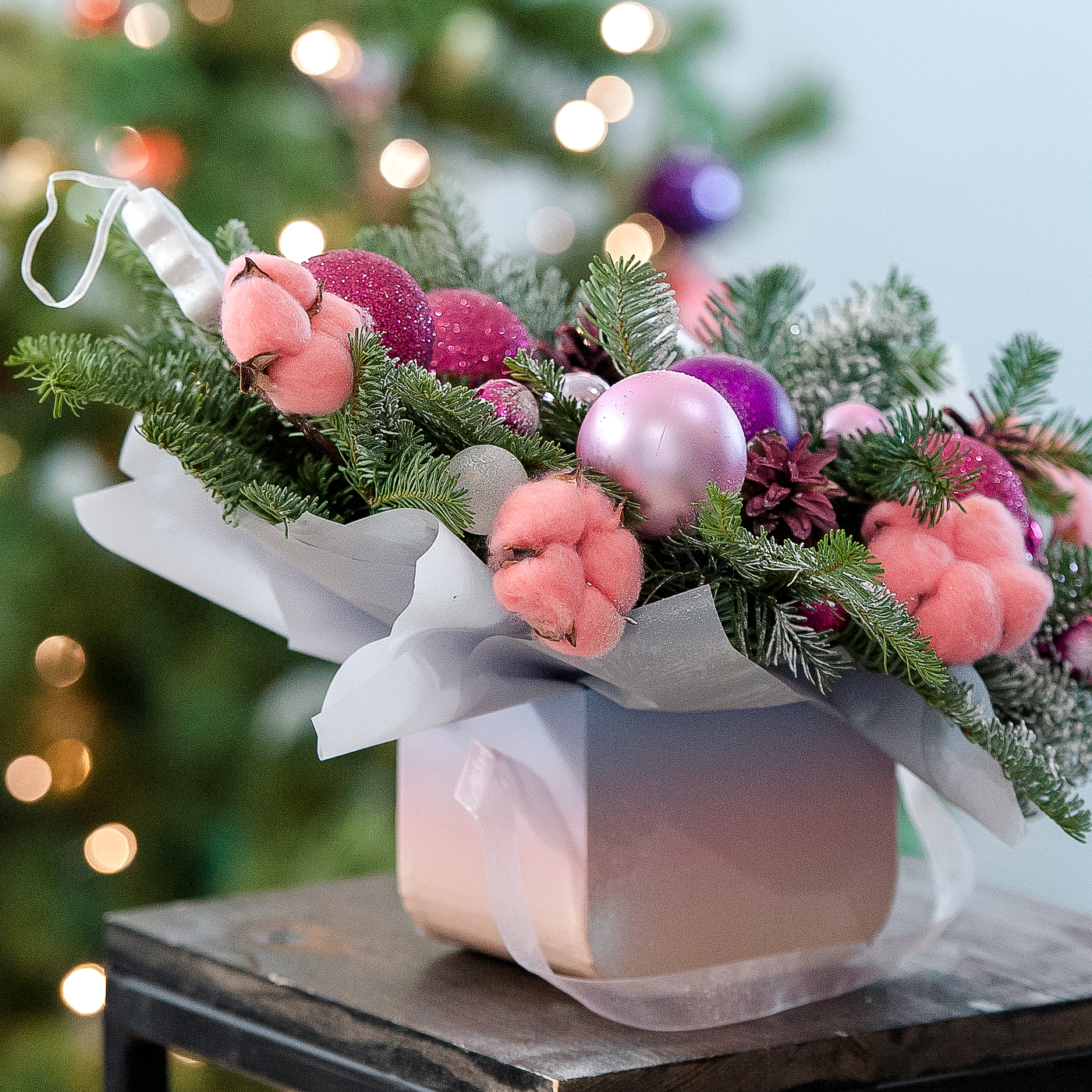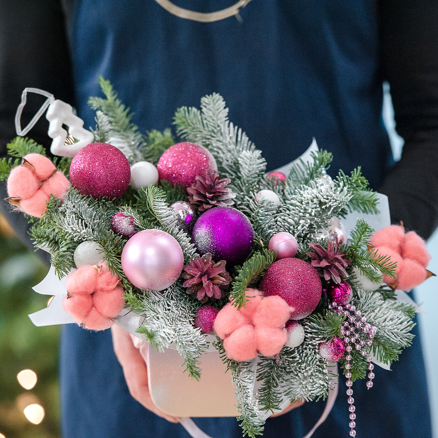 Оригинальная новогодняя композиция с нобилисом и хлопком