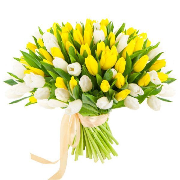 Бело-желтые тюльпаны под ленту