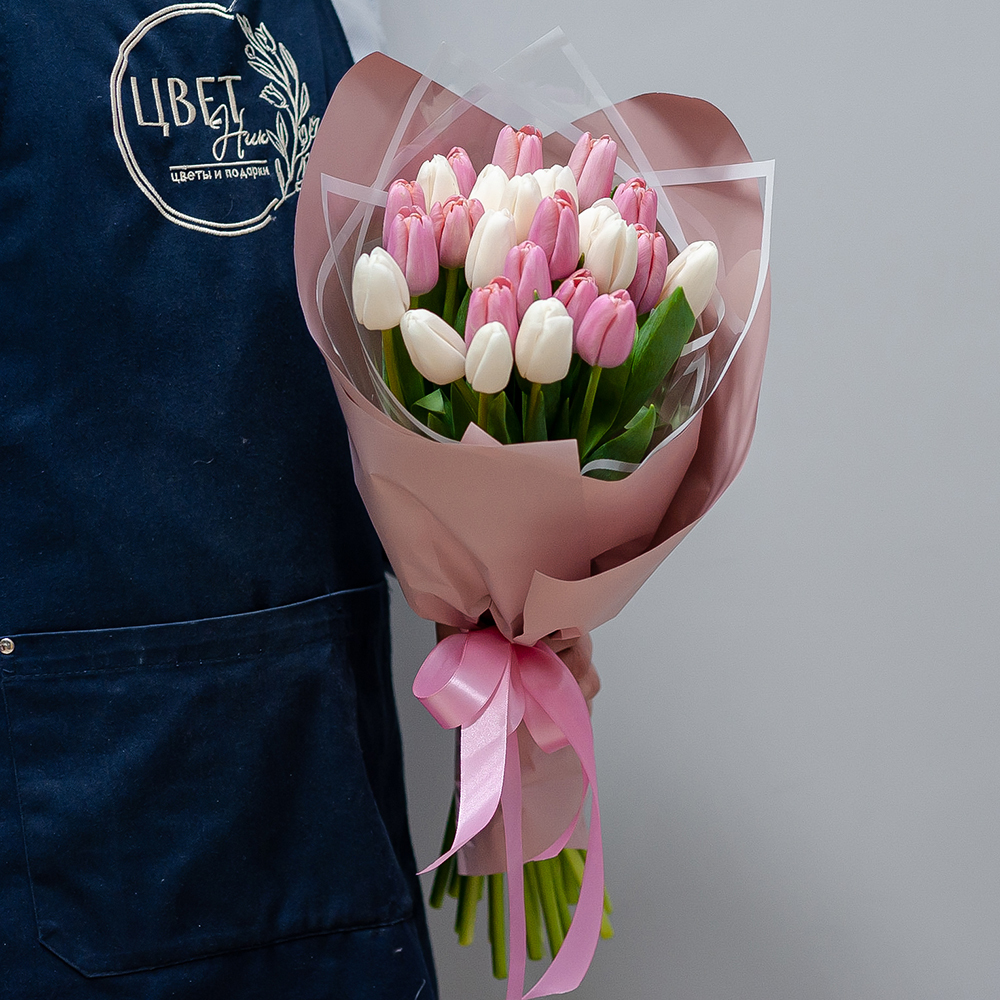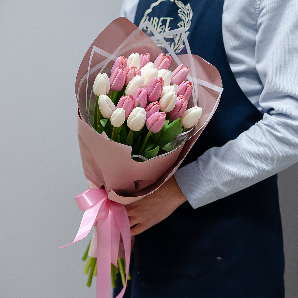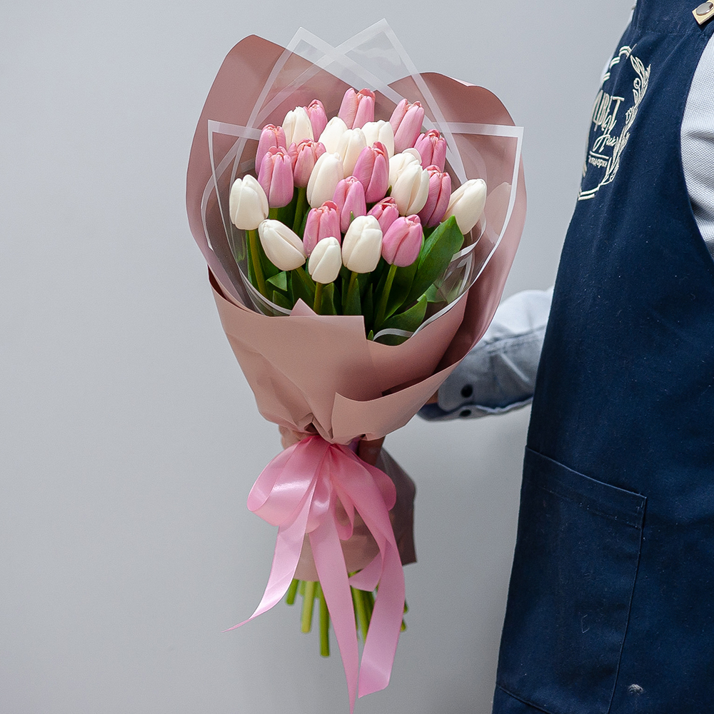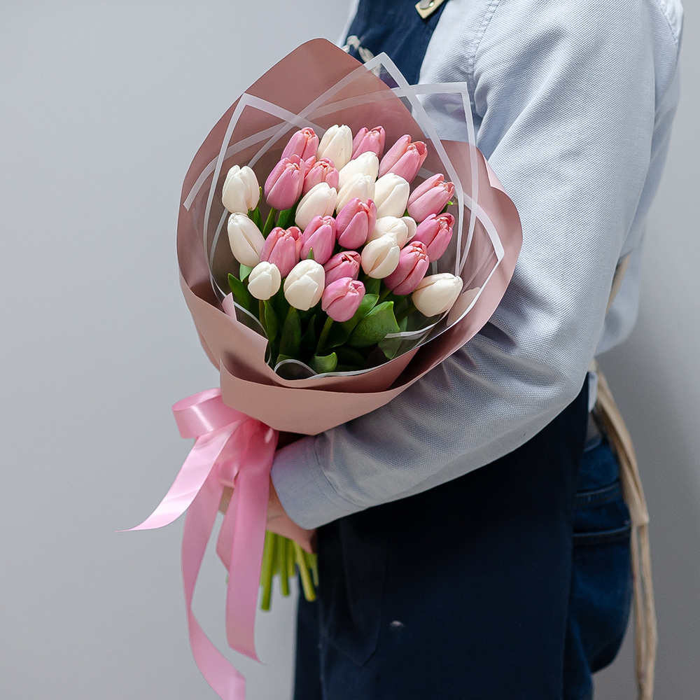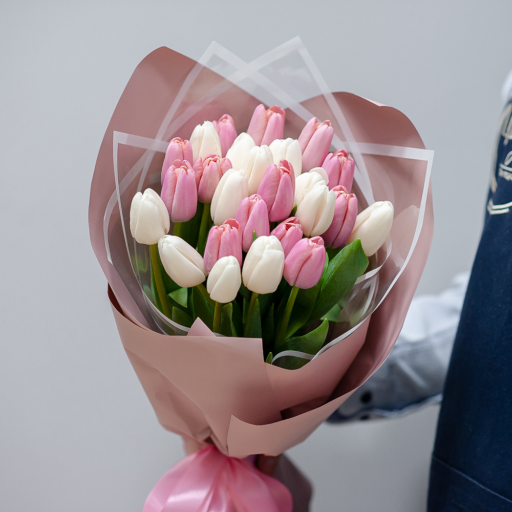 Белые и розовые тюльпаны