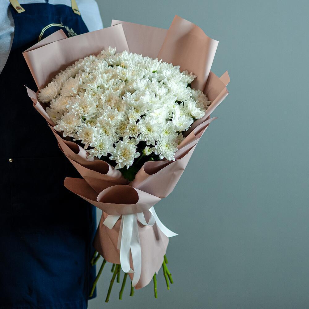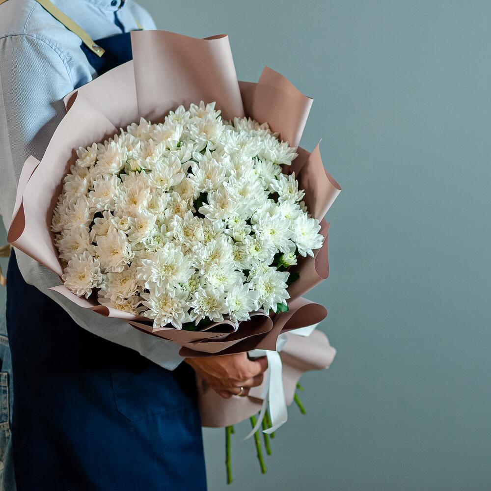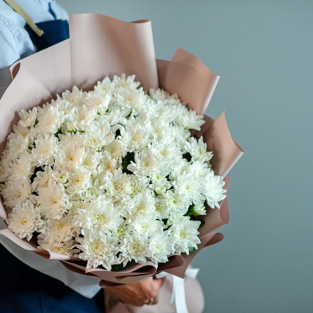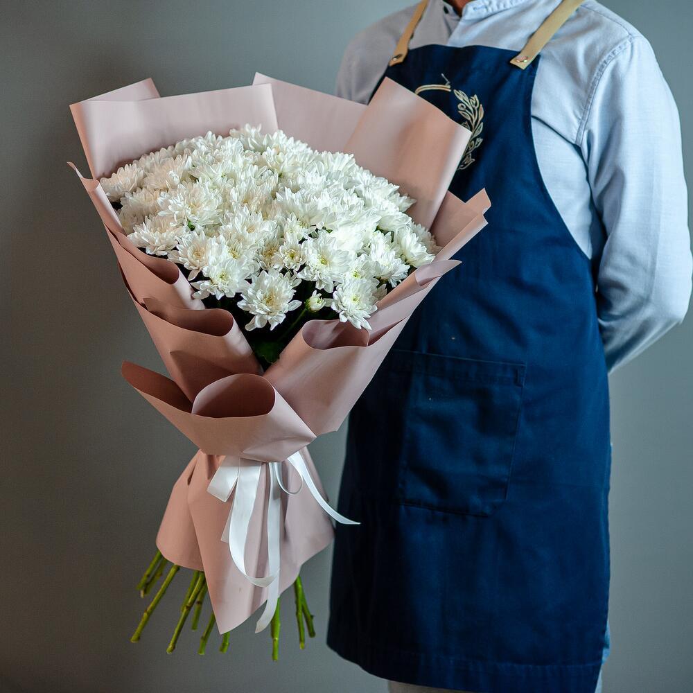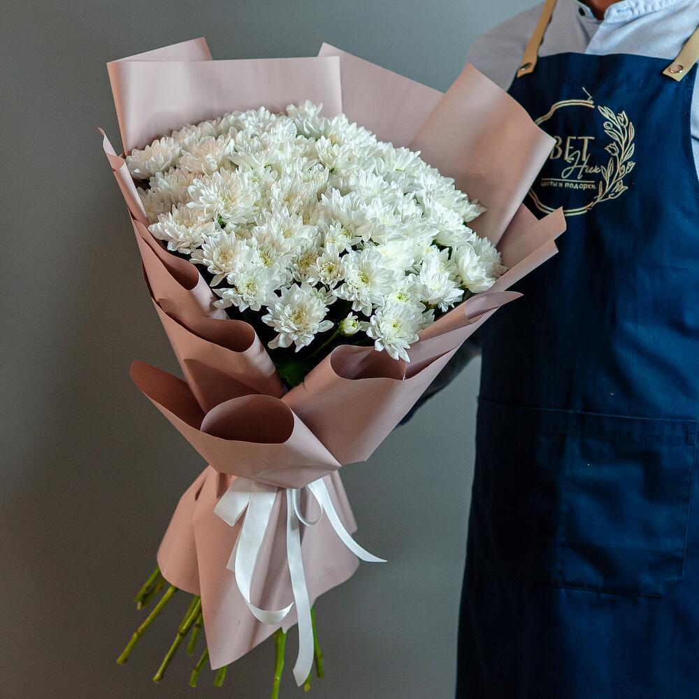 Букет представляет собой стильный и элегантный монобукет из 15 хризантем, выполненный в классическом белом цвете. Высота букета составляет 60 см, что делает его заметным и впечатляющим. В комплекте с букетом идет бант и пленка, что позволяет сохранить свежесть цветов и защитить их от пыли и грязи. Букет подходит для подарка на различные праздники, такие как 8 Марта, День знаний, День матери, день рождения, День святого Валентина, День семьи, День учителя и юбилей.