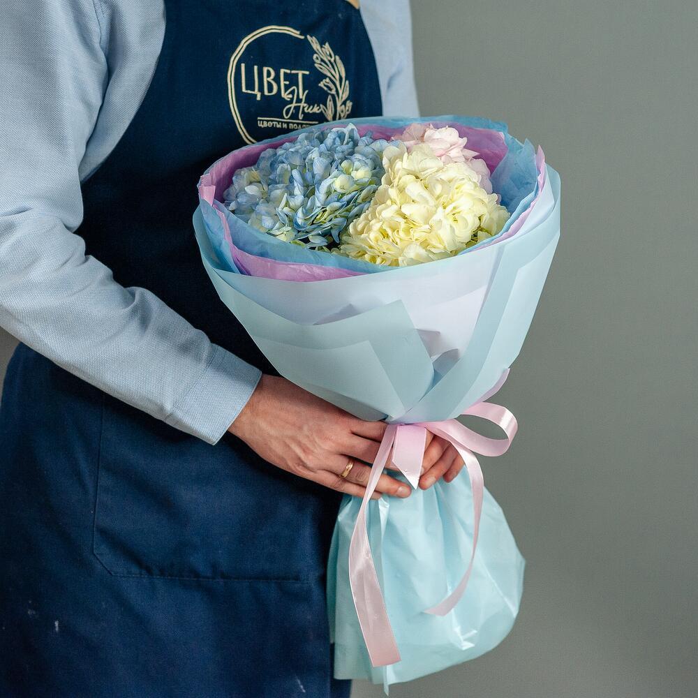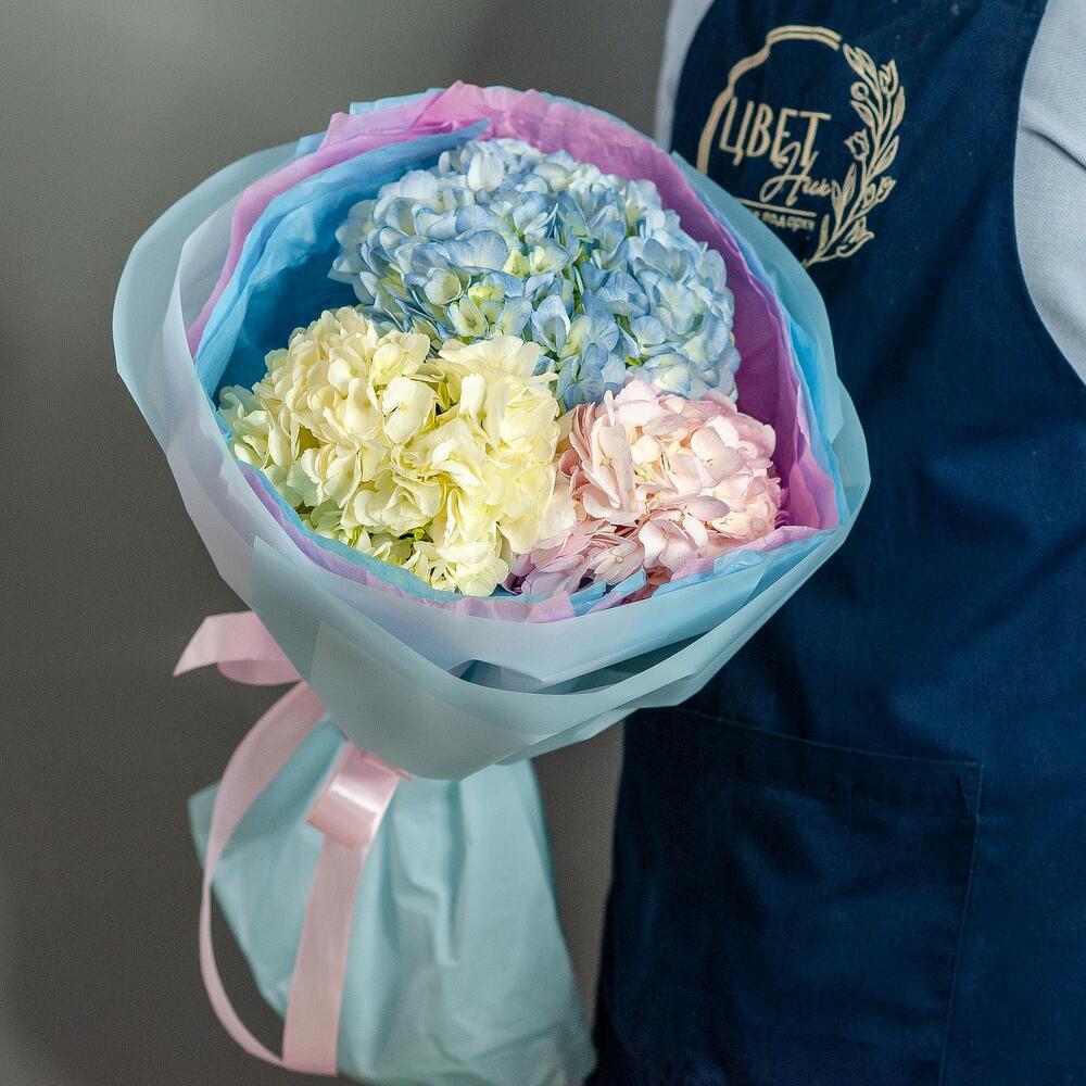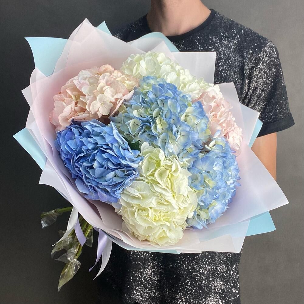 Воздушный букет из ажурных гортензий. Букет из облака гортензий нежных зефирных оттенков – необычный букет, который смотрится очень эффектно и изысканно. Гортензия поражает нежностью, обилием расцветок и невероятным объемом. Мы подготовили для вас неповторимое сочетание стиля, шарма и легкости. Букет из разноцветных гортензий подарит незабываемые эмоции и станет любимым букетом на долгие годы.