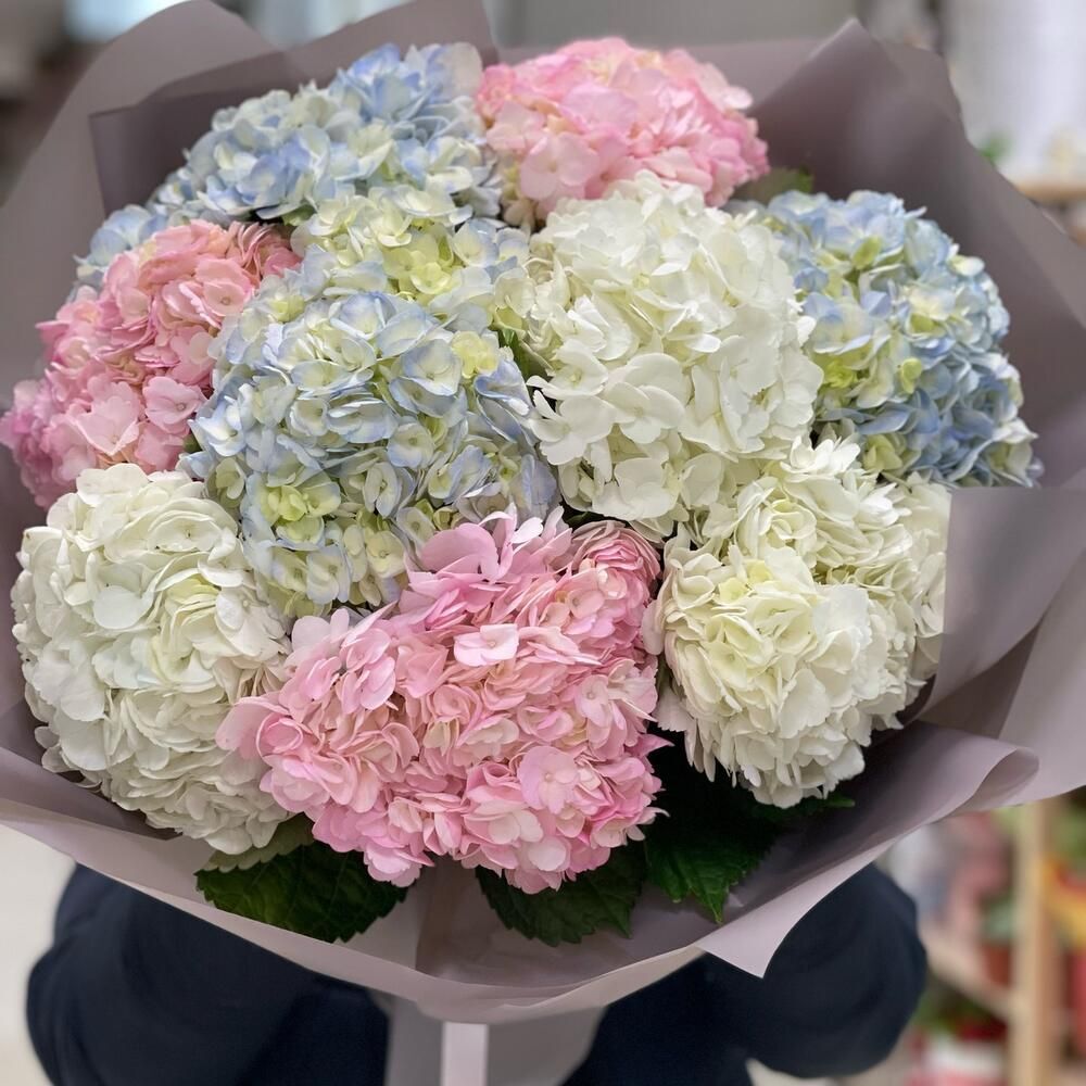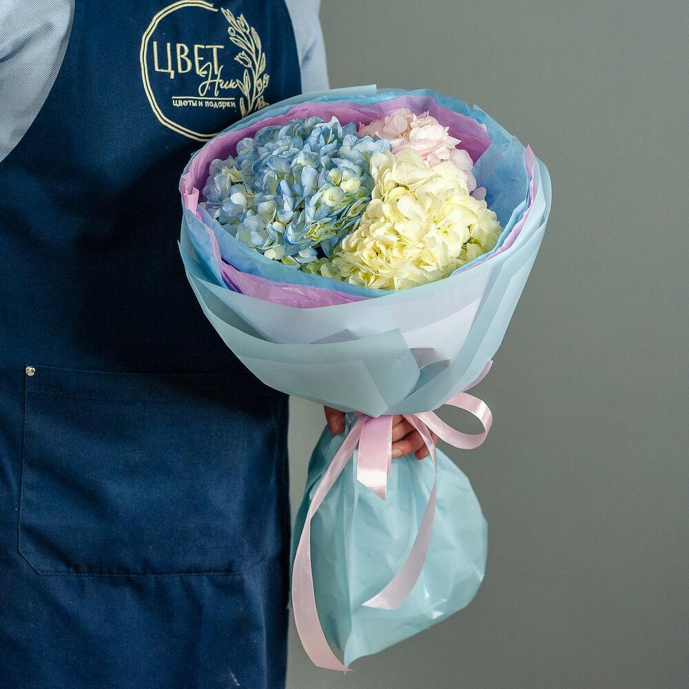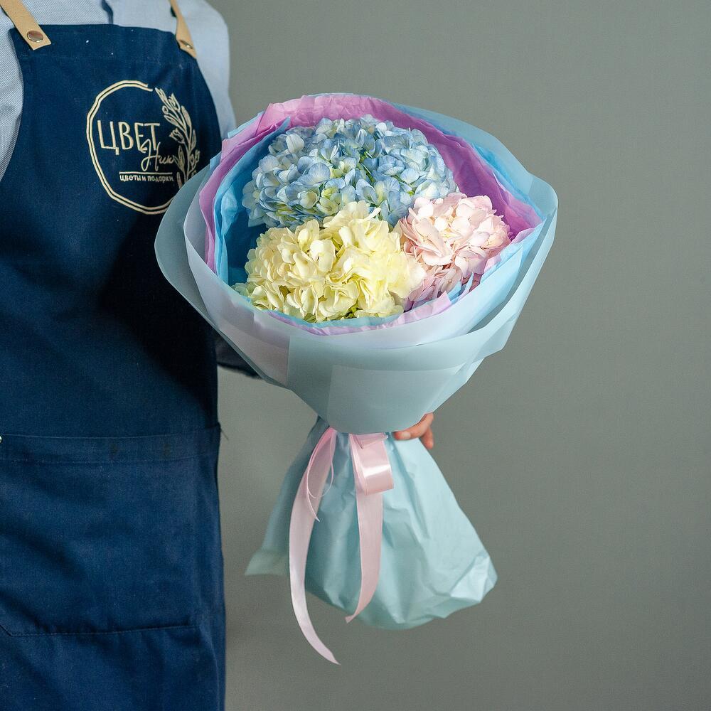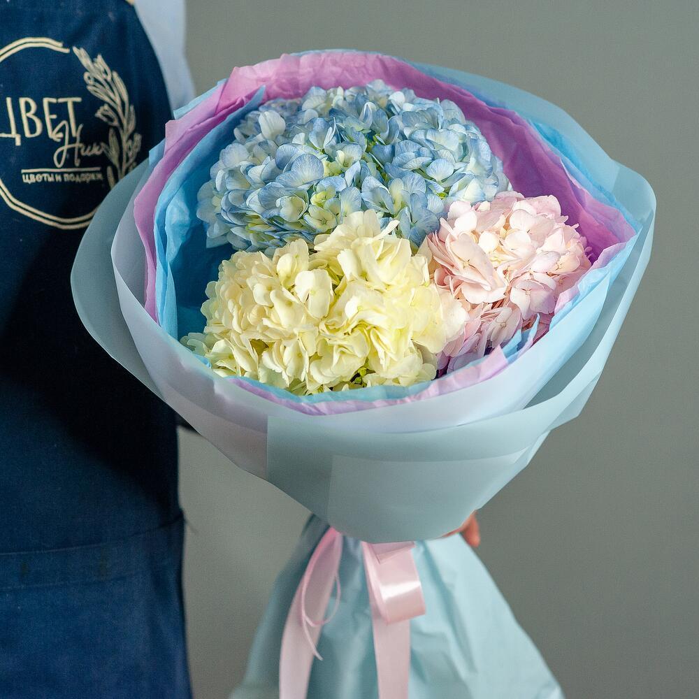 Воздушный букет из ажурных гортензий. Букет из облака гортензий нежных зефирных оттенков – необычный букет, который смотрится очень эффектно и изысканно. Гортензия поражает нежностью, обилием расцветок и невероятным объемом. Мы подготовили для вас неповторимое сочетание стиля, шарма и легкости. Букет из разноцветных гортензий подарит незабываемые эмоции и станет любимым букетом на долгие годы.