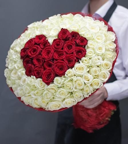 Роскошный букет из роз «Сердце любви» Хотите выразить свои чувства без слов? Этот потрясающий букет станет идеальным подарком для особенного человека. Композиция состоит из нежных белых роз, в центре которых расположены ярко-красные цветы в виде сердца – трогательный символ любви, страсти и преданности. Состав: свежие белые и красные розы премиум-класса Размер: большой, пышный букет Идеально для: признания в любви, годовщины, Дня рождения, 14 февраля или просто сюрприза для любимого человека Доставка: быстрая доставка по городу Рязань Порадуйте близкого человека элегантным и запоминающимся подарком! Закажите прямо сейчас!