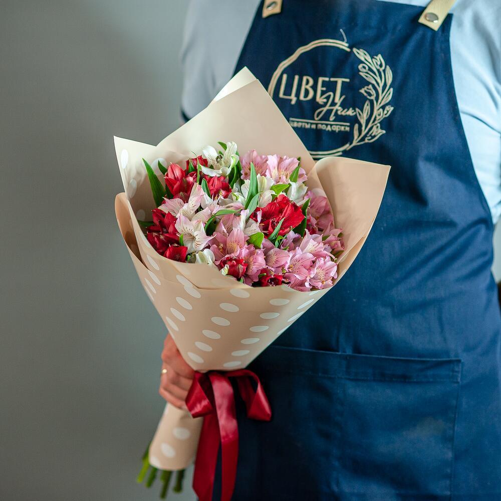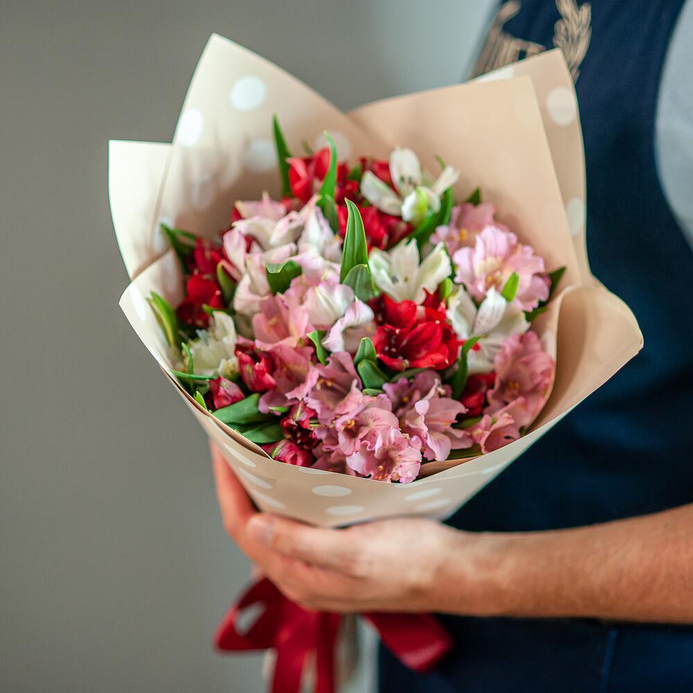 - Необычное насыщение цвета: Альстромерии в нашем букете представлены в различных оттенках — от ярких до пастельных, что позволяет создать уникальную атмосферу и подчеркнуть индивидуальность получателя.
