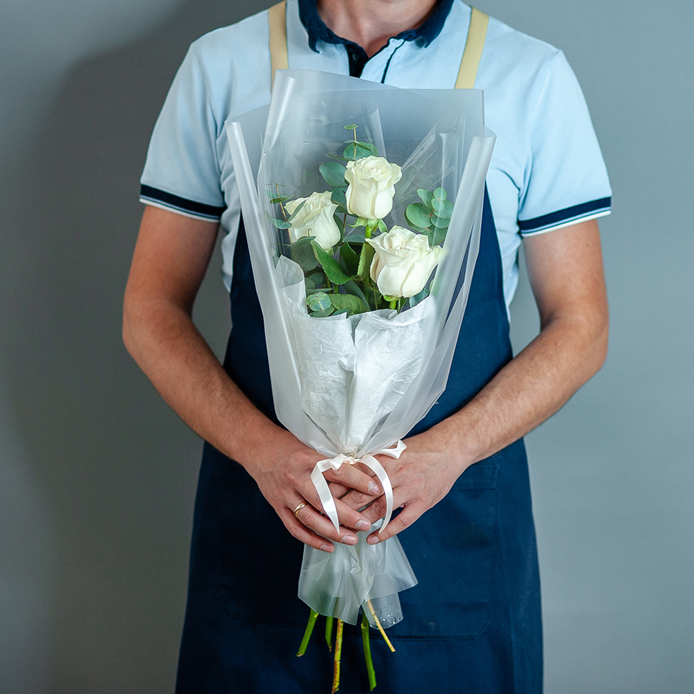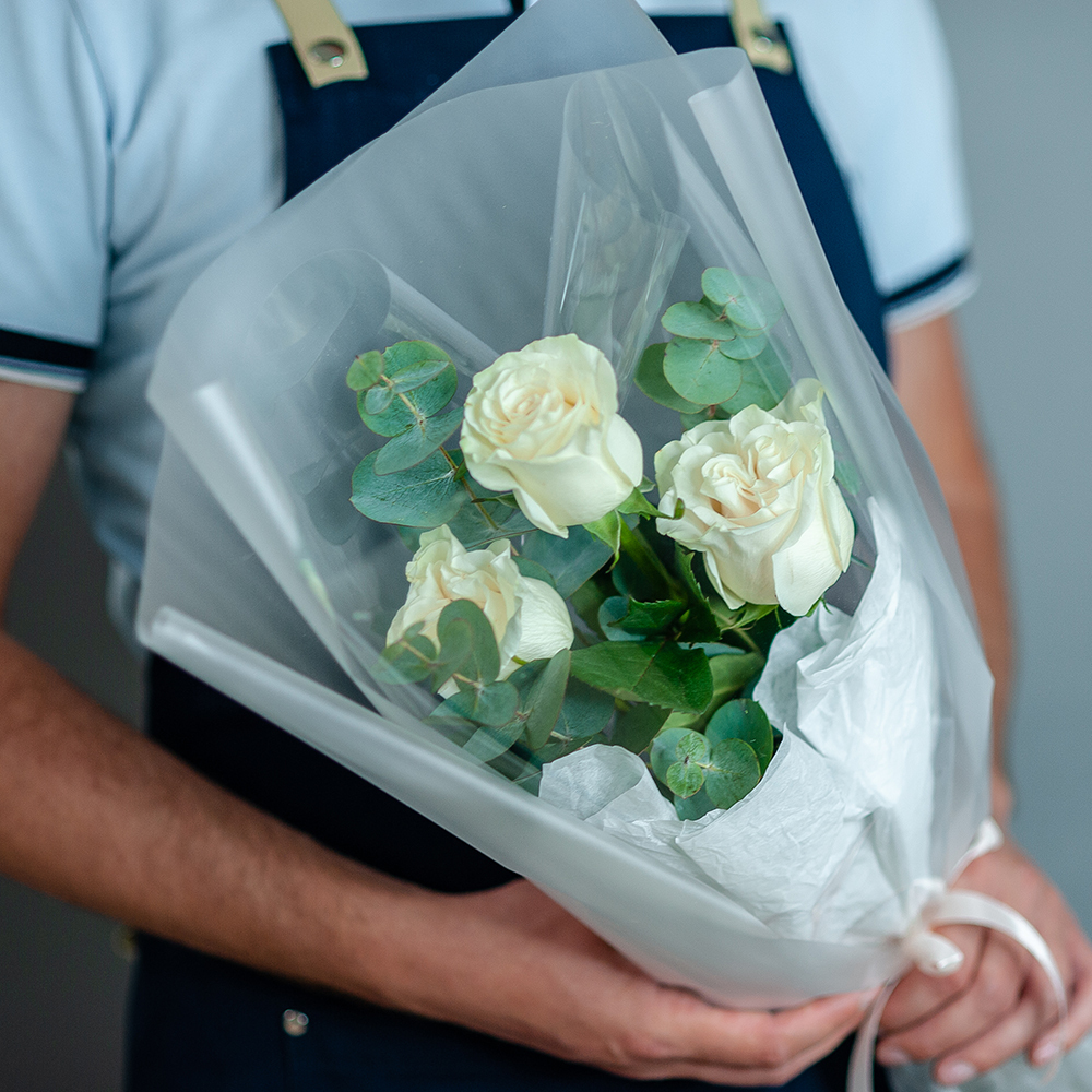Небольшой букет из 3 белых эквадорских роз с эвкалиптом в стильном оформлении из матовой пленки — это идеальное сочетание elegance и простоты! Белые розы символизируют чистоту и невинность, а эвкалипт добавляет нотку свежести и оригинальности. Этот букет станет замечательным подарком для любого повода! Заказывайте прямо сейчас и получите качественную доставку цветов в Рязани! Сделайте каждый момент особенным с нашим изысканным букетом!