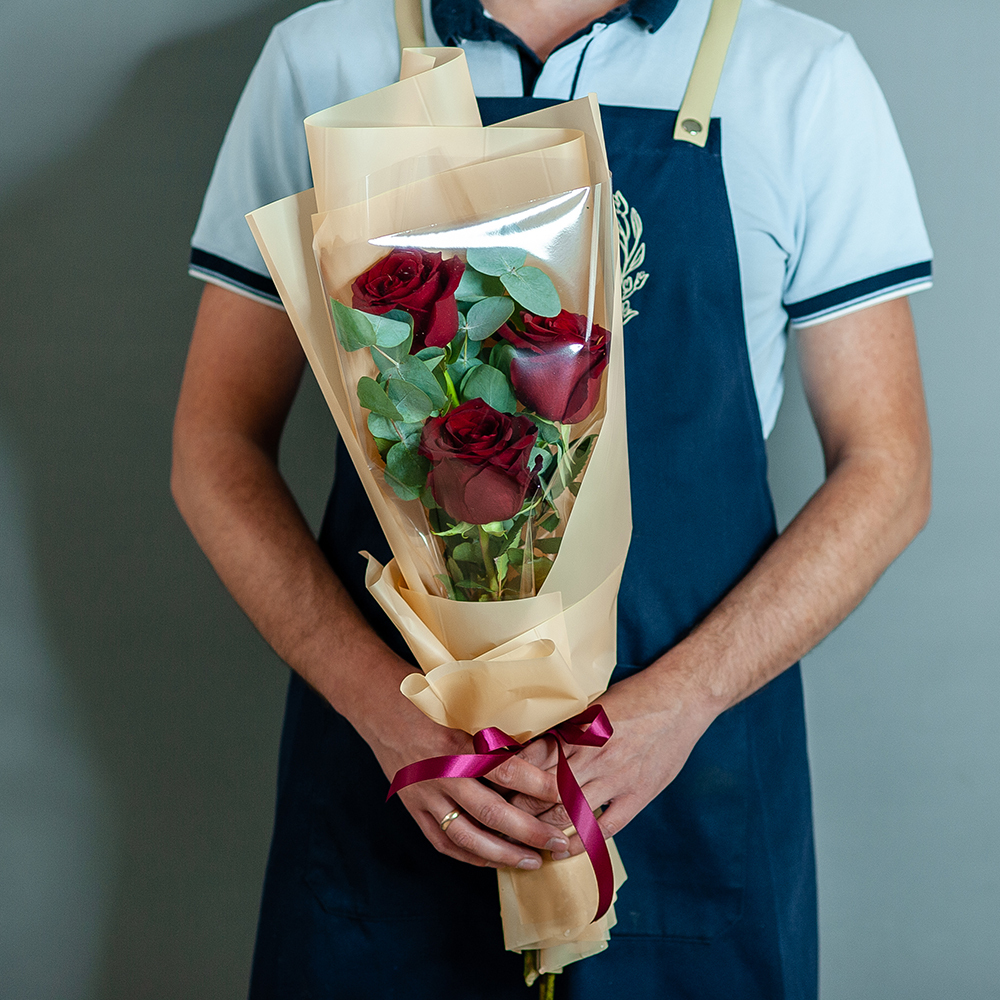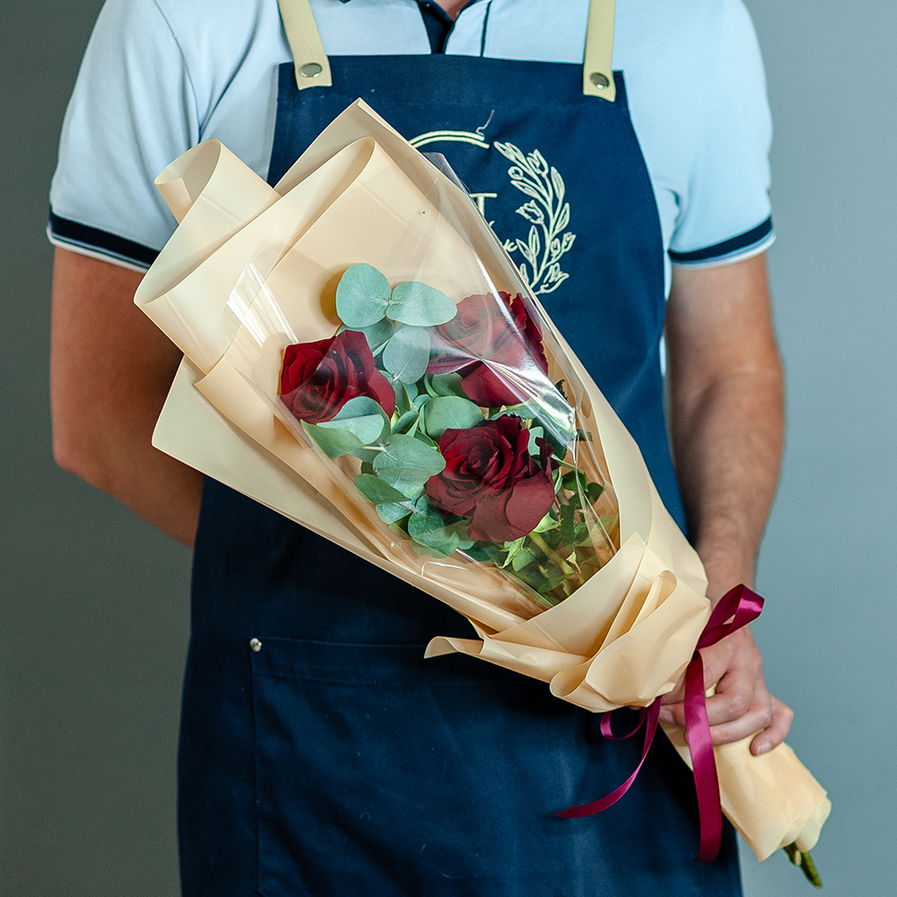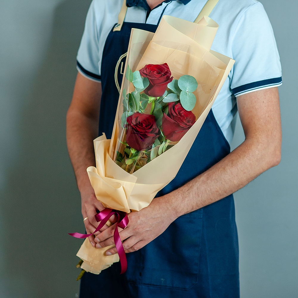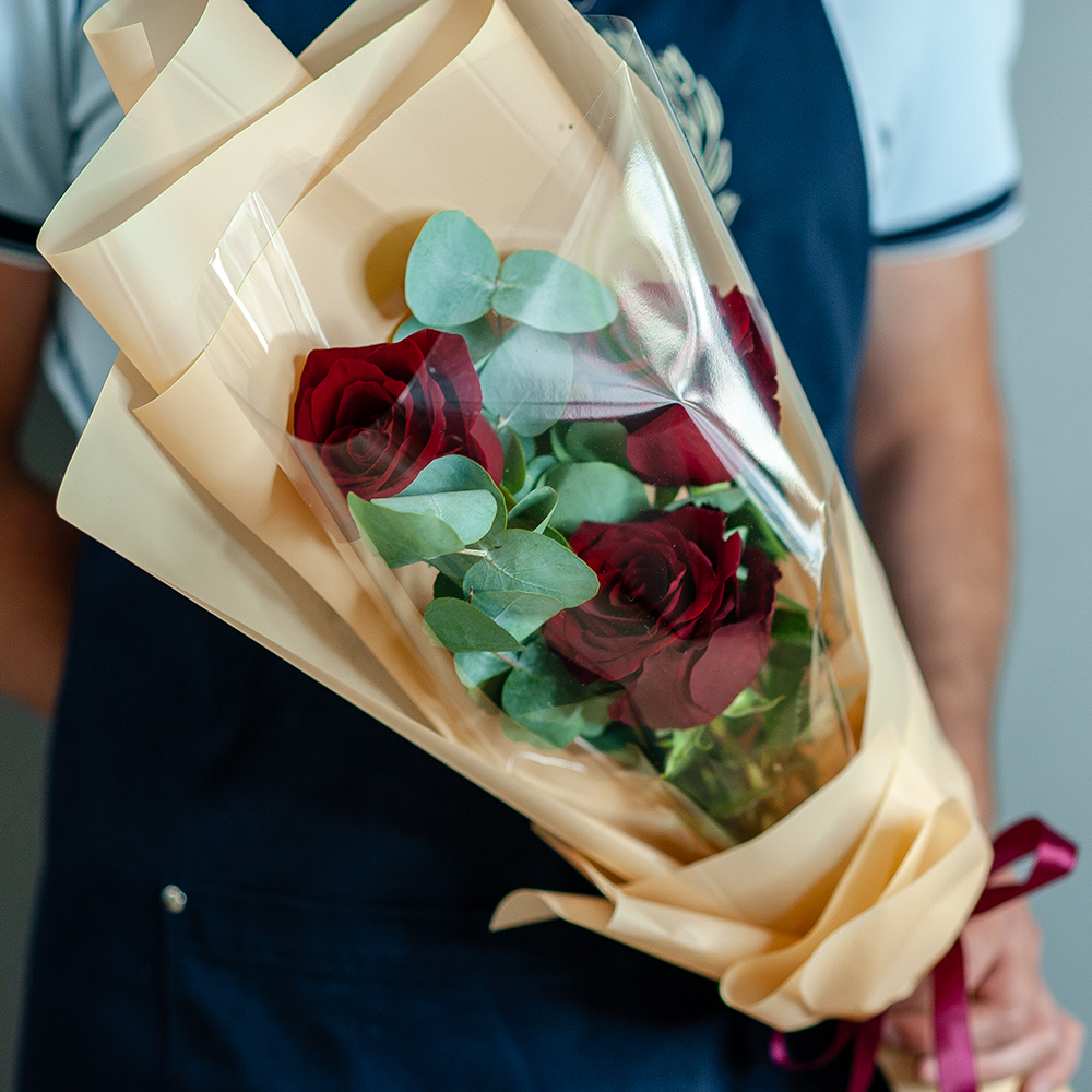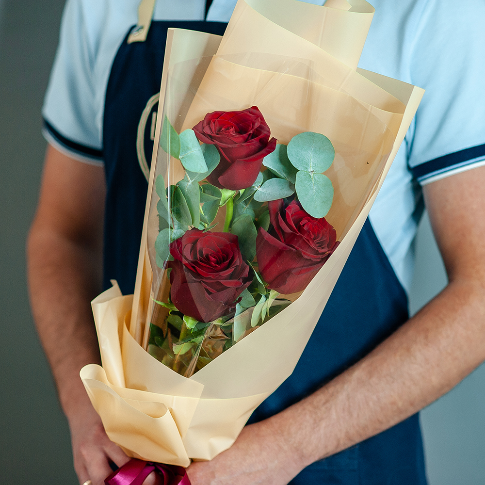 Букет из 3 красных роз с эвкалиптом – это идеальное сочетание простоты и шарма для любых случаев жизни. Каждая роза в этом букете дарит радость и тепло, а добавление нежных листьев эвкалипта создает свежий и оригинальный акцент. Упакованный в стильную матовую пленку и перевязанный атласной лентой, этот букет станет отличным комплиментом для ваших близких, украсит будний день или поднимет настроение без особого повода. Бюджетный вариант, который не уступает в красоте и элегантности – порадуйте себя и своих любимых искренними цветами без повода или по любому случаю!