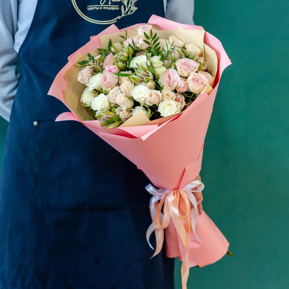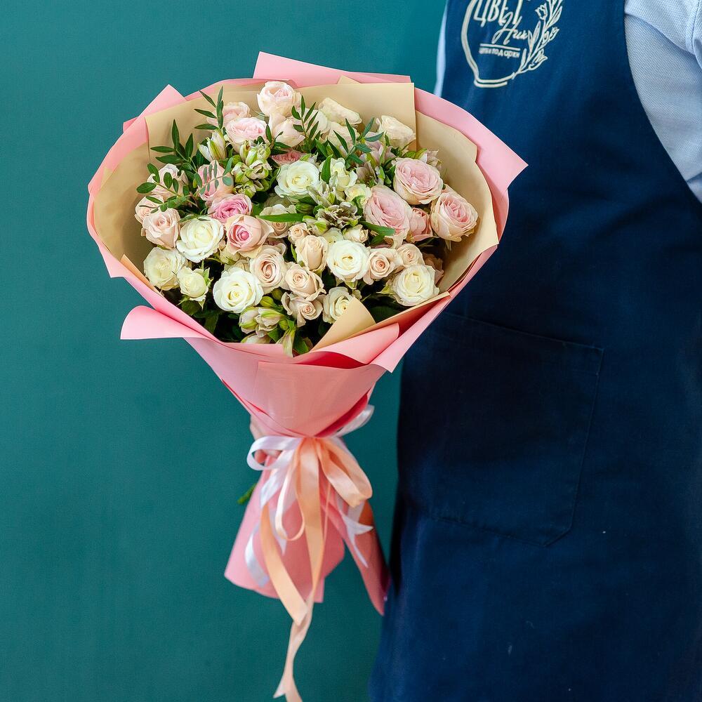 Букет нежных кустовых роз с альстромерией — это изысканное сочетание, которое порадует даже самых взыскательных ценителей флористики! Нежные розы и яркие альстромерии создают гармоничную композицию, идеально подходящую для любого повода. Заказывайте сейчас и воспользуйтесь нашим сервисом по доставке цветов в Рязани — быстро и удобно! Подарите радость вашим близким с помощью этого великолепного букета!