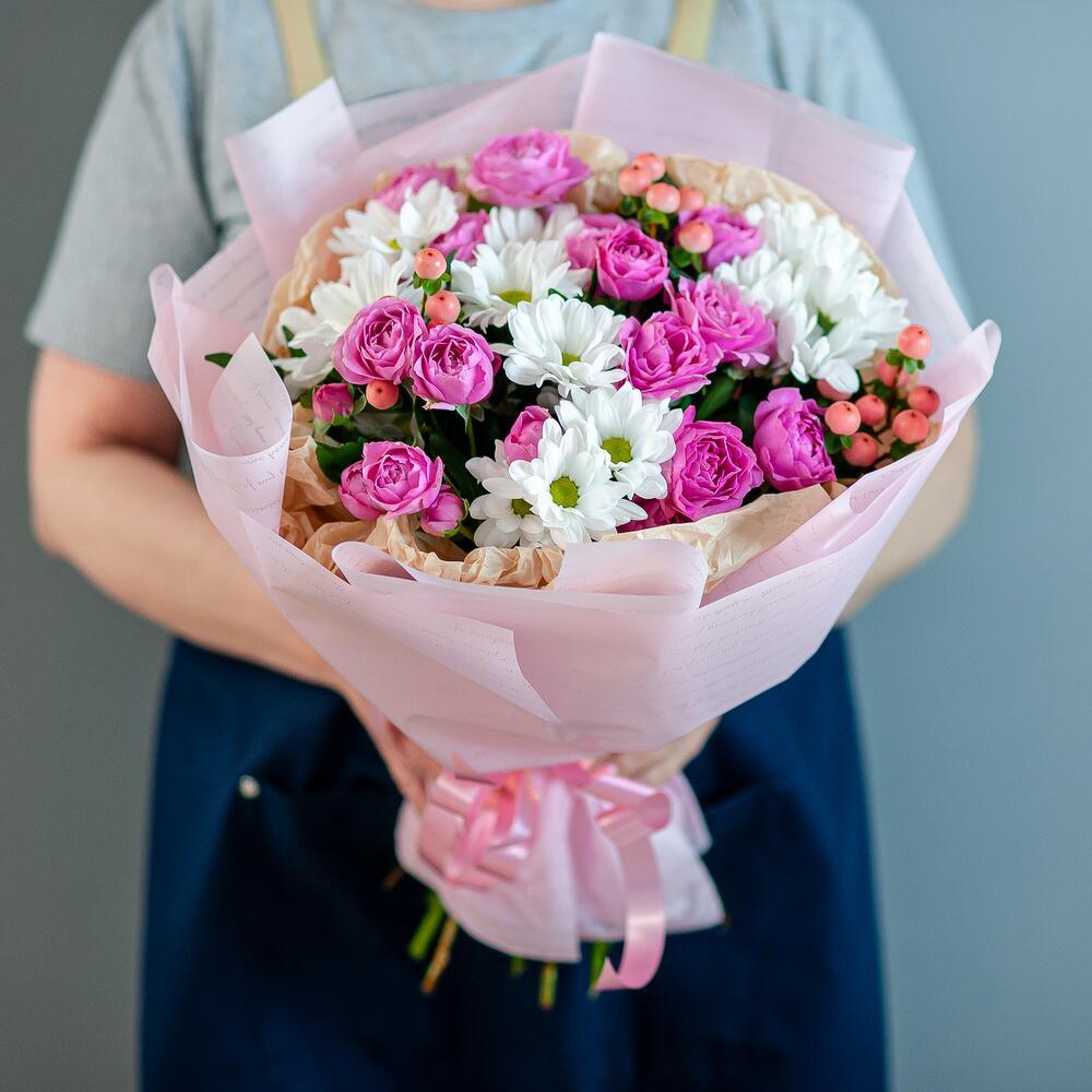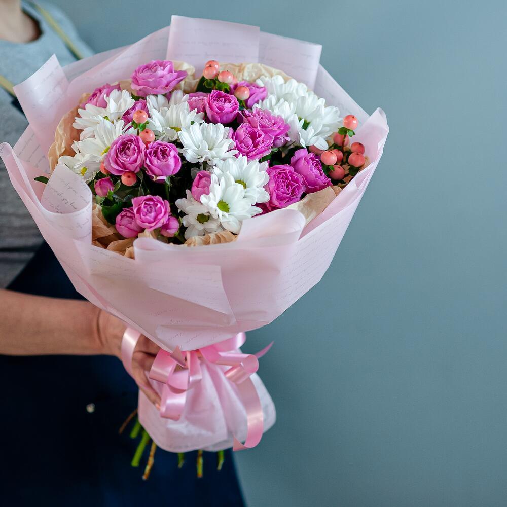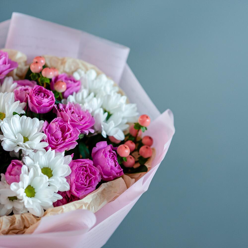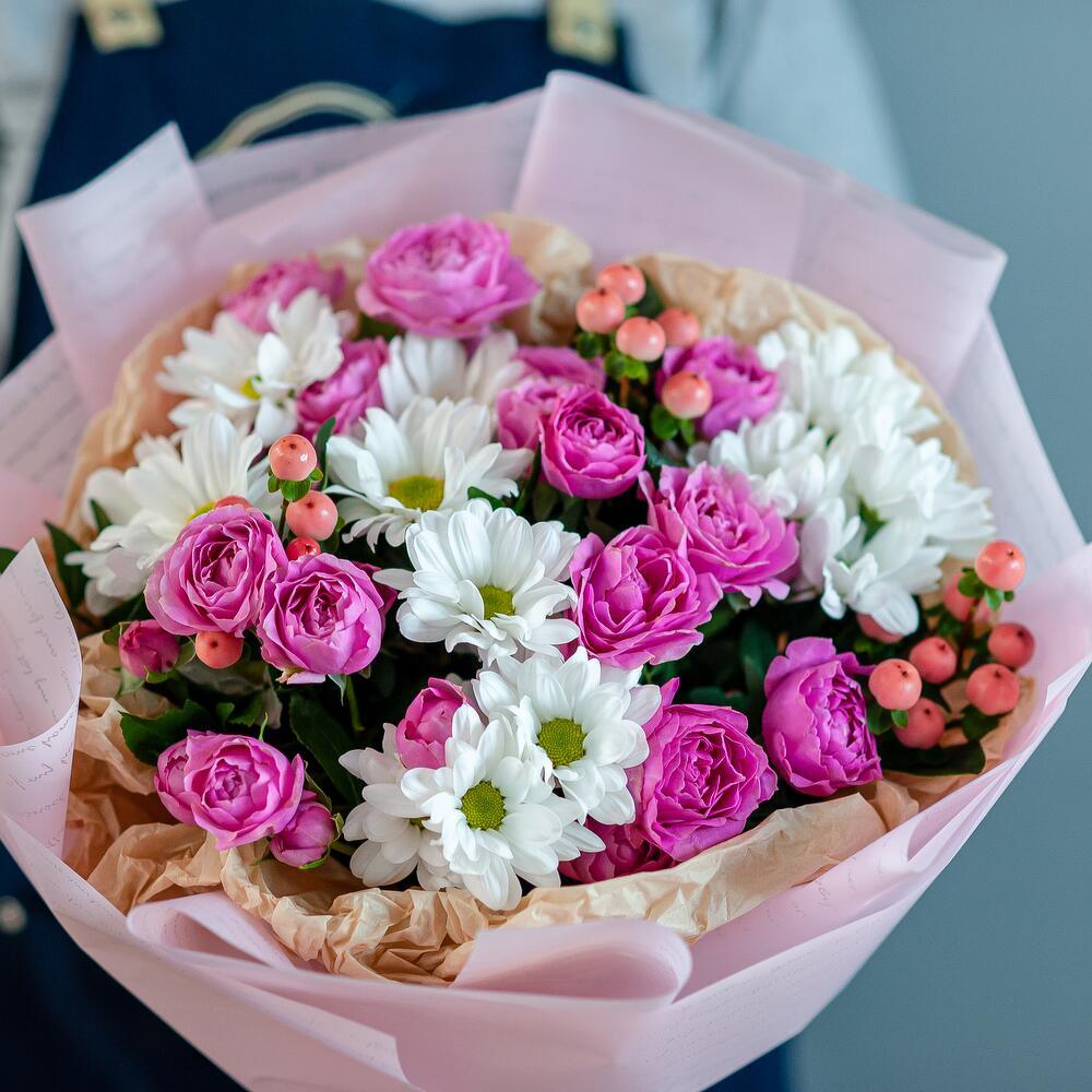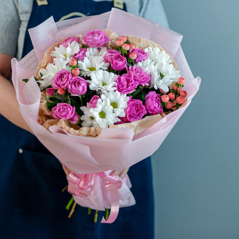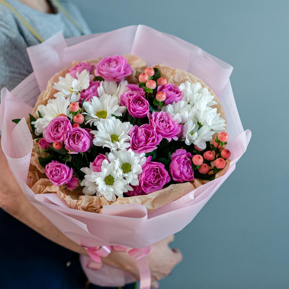 Добро пожаловать в мир красоты и свежести – наш магазин предлагает вам букет цветов, который станет идеальным подарком для любого случая! Неважно, хотите ли вы удивить свою вторую половинку, поздравить маму или просто сделать приятный сюрприз близкому человеку – этот букет подойдет для любого повода. В его состав входят кустовая роза, кустовая хризантема и гиперикум – все эти цветы символизируют самые искренние чувства и эмоции. Кустовая роза – это олицетворение любви и нежности, хризантема – знак дружбы и верности, а гиперикум добавляет букету яркости и неповторимости. Мы предлагаем вам услугу доставки цветов по Рязани – наши курьеры доставят ваш заказ в удобное для вас время и место. Вам больше не придется беспокоиться о том, как порадовать близких – мы сделаем все за вас! Закажите букет прямо сейчас – и уже через несколько часов он будет радовать глаз того, кто вам дорог. Не упустите возможность сделать ваш день ярче и счастливее вместе с нашим магазином!