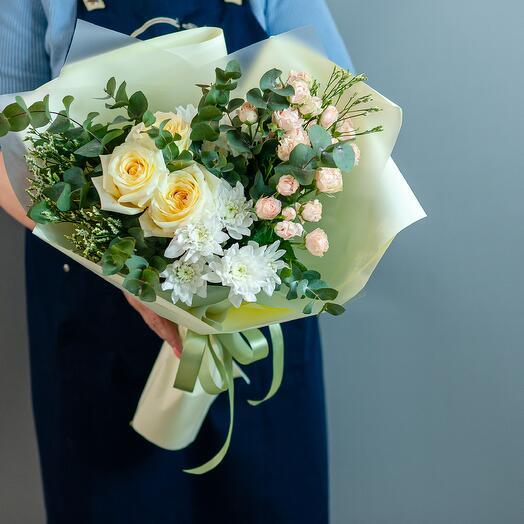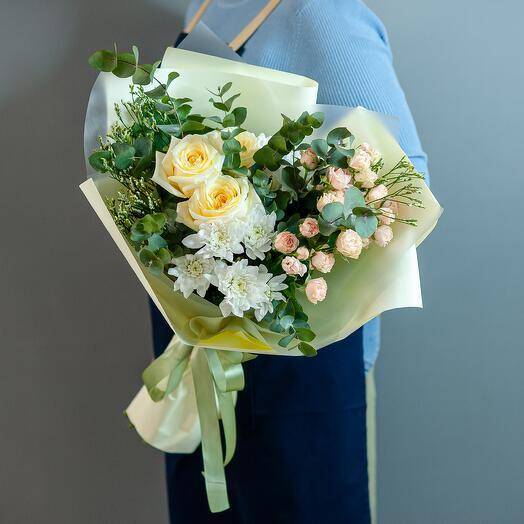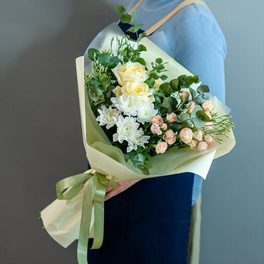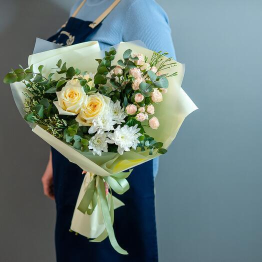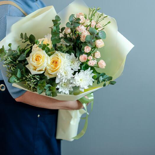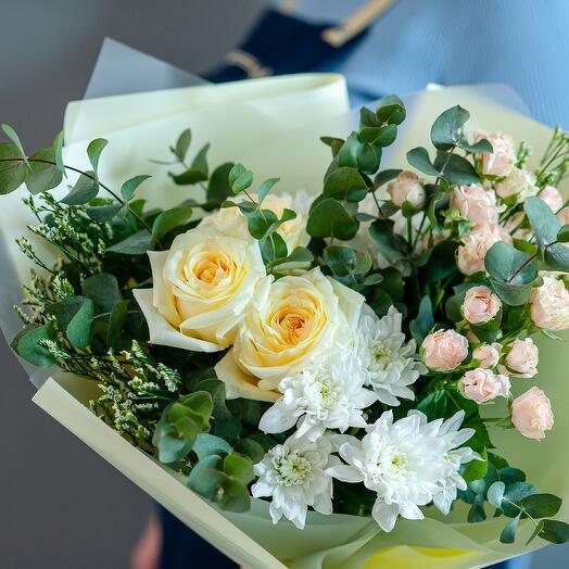 Ищите идеальный букет для своего особенного случая? Встречайте наш новый букет, созданный специально для того, чтобы выразить свои чувства в Рязани! В этом букете собраны пышные пионовидные и кустовые розы - символы страсти и глубины чувств. Эвкалипт придает букету освежающую легкость, а изысканная упаковка завершает образ. Быстрая и надежная доставка цветов по Рязани позволит вам подарить радость вашим близким в любое время и на любом расстоянии. Закажите прямо сейчас и порадуйте своих близких!