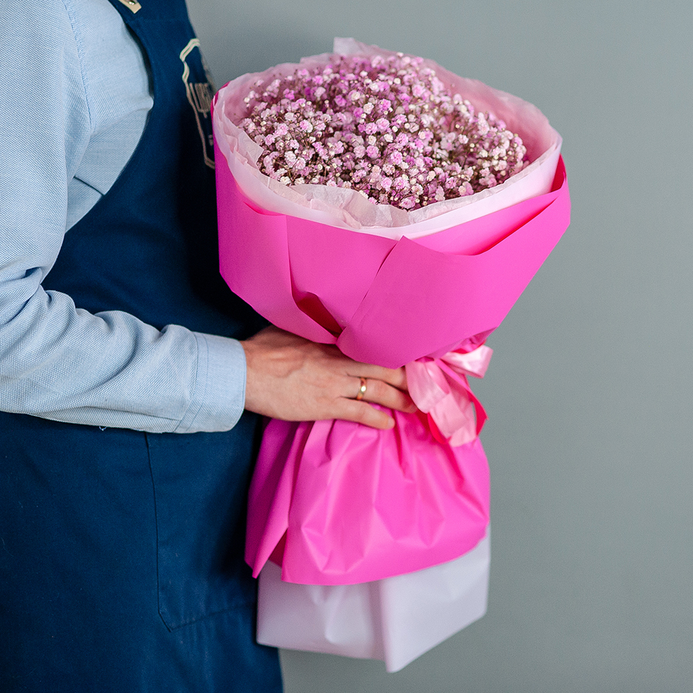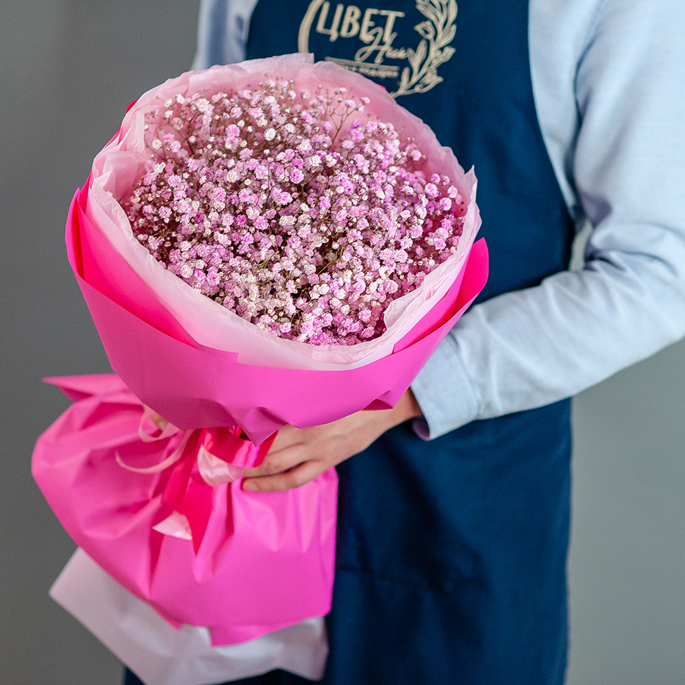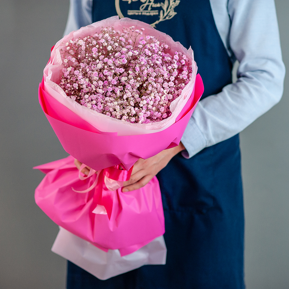 Нежный букет из розовой гипсофилы Ищете идеальный подарок для особенного человека? Легкий, воздушный и невероятно красивый букет из розовой гипсофилы – это воплощение нежности и элегантности. Эти маленькие цветы словно облачко романтики, которое подчеркнет ваши чувства и порадует получателя. Почему стоит выбрать этот букет? Долговечность – гипсофила долго сохраняет свежий вид. Универсальность – подойдет для любого случая: романтического свидания, дня рождения, юбилея или просто как знак внимания. Стильное оформление – тщательно подобранная упаковка в розовых оттенках делает букет еще эффектнее. Доставка по Рязани! Закажите сейчас, и мы оперативно доставим букет в удобное вам время. Порадуйте близких красивым и оригинальным подарком! Оформляйте заказ на сайте или по телефону.