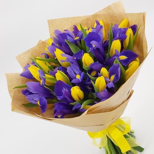 13 тюльпанов и 12 ирисов в крафте