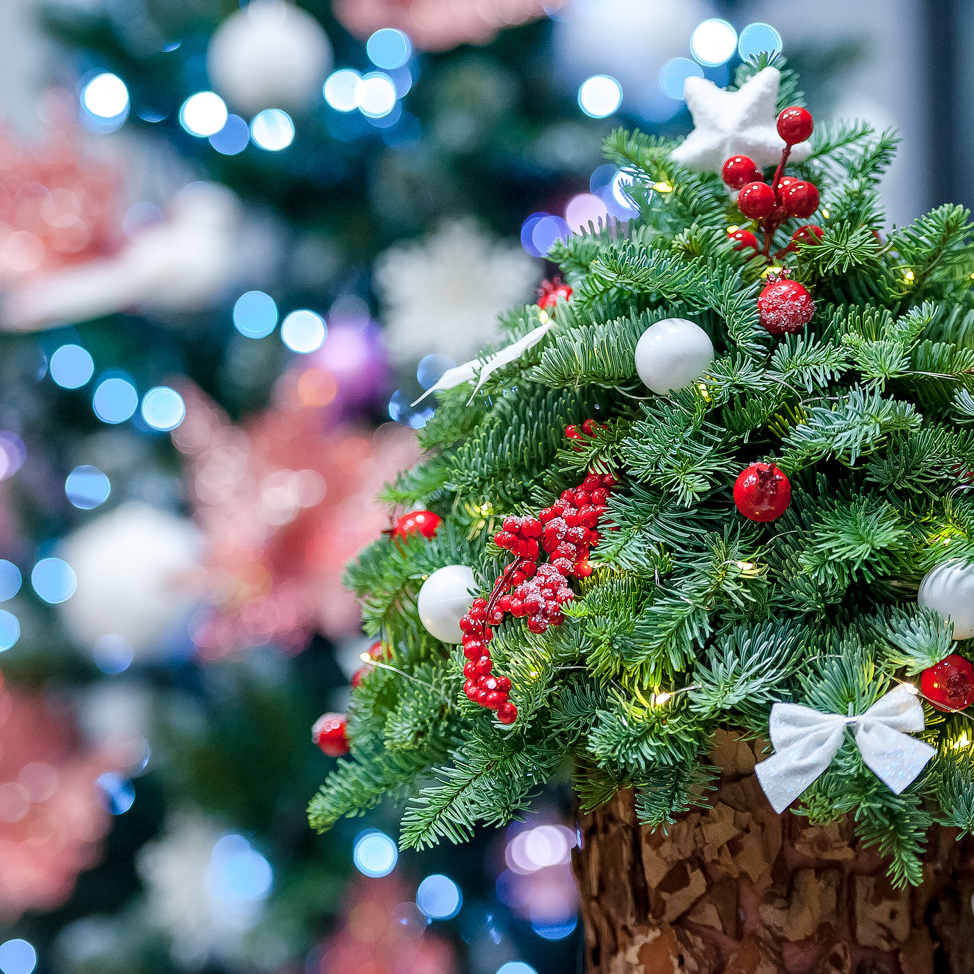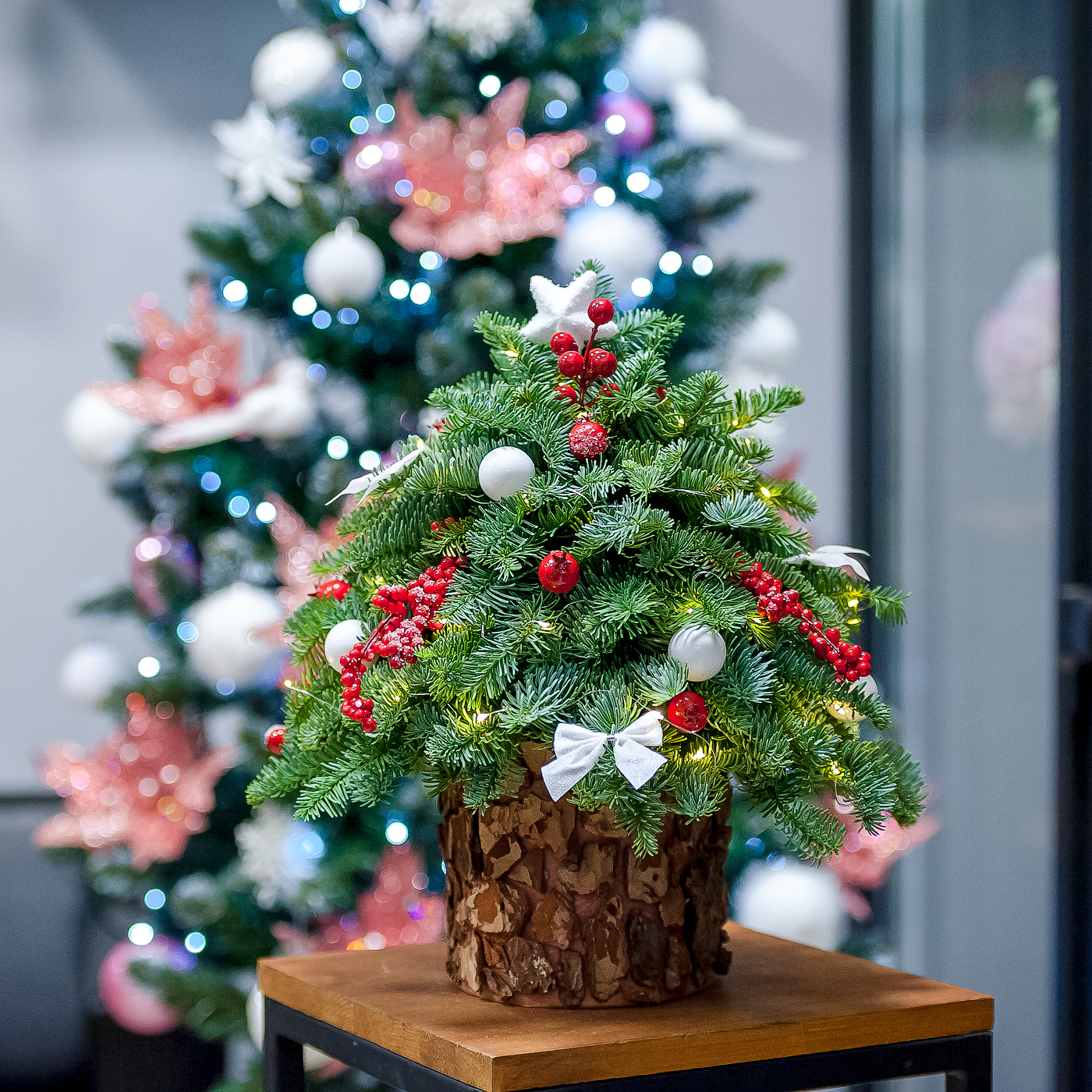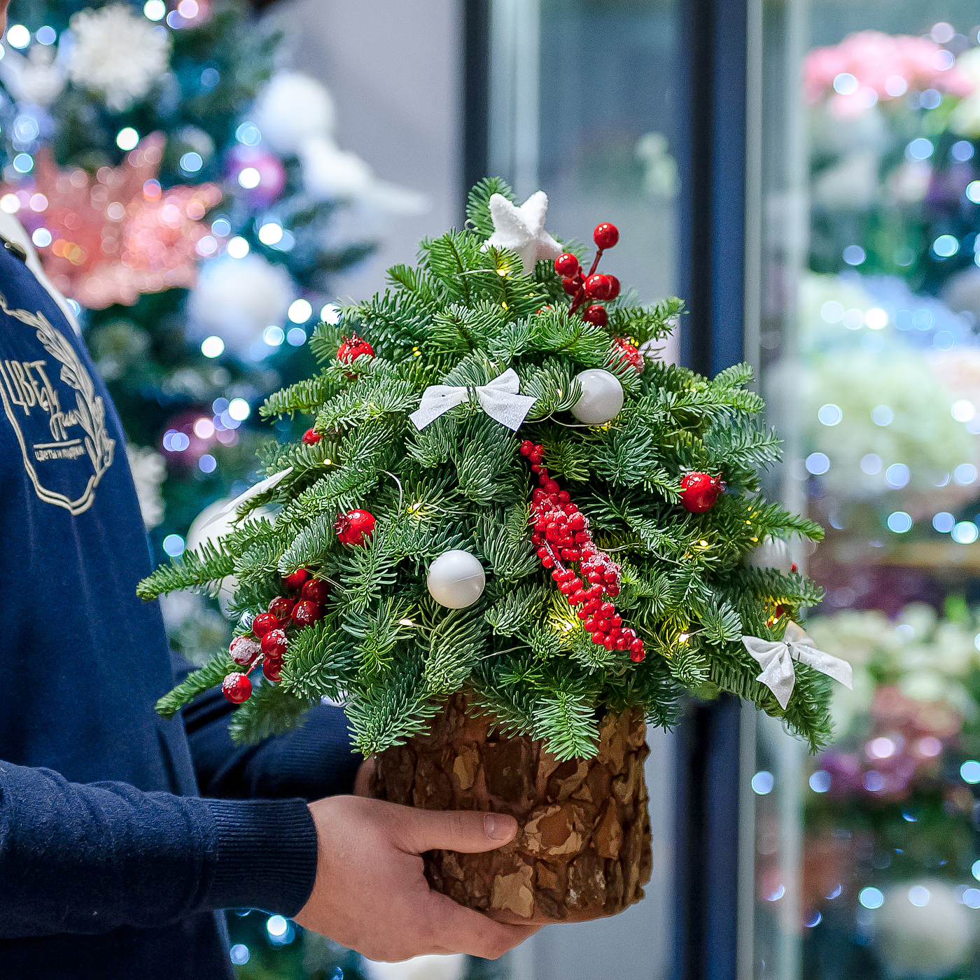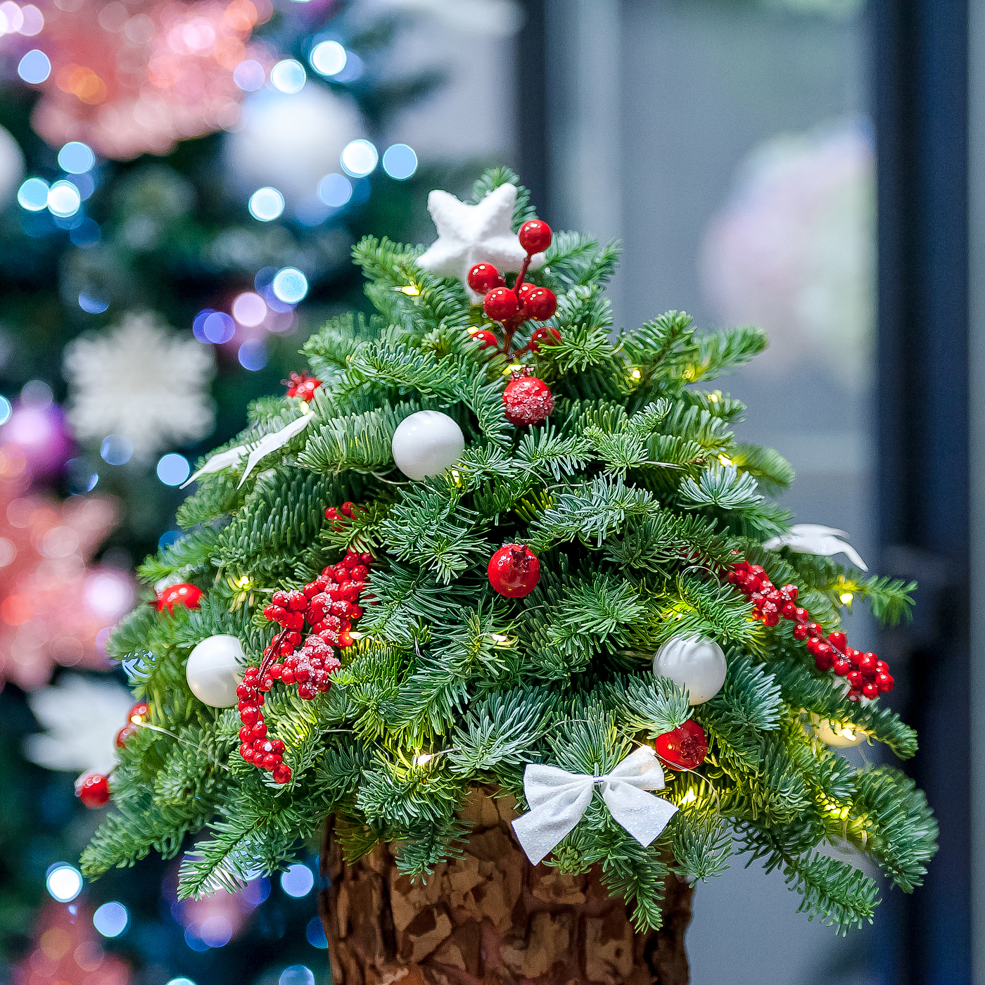Елка из нобилиса в шляпной коробке