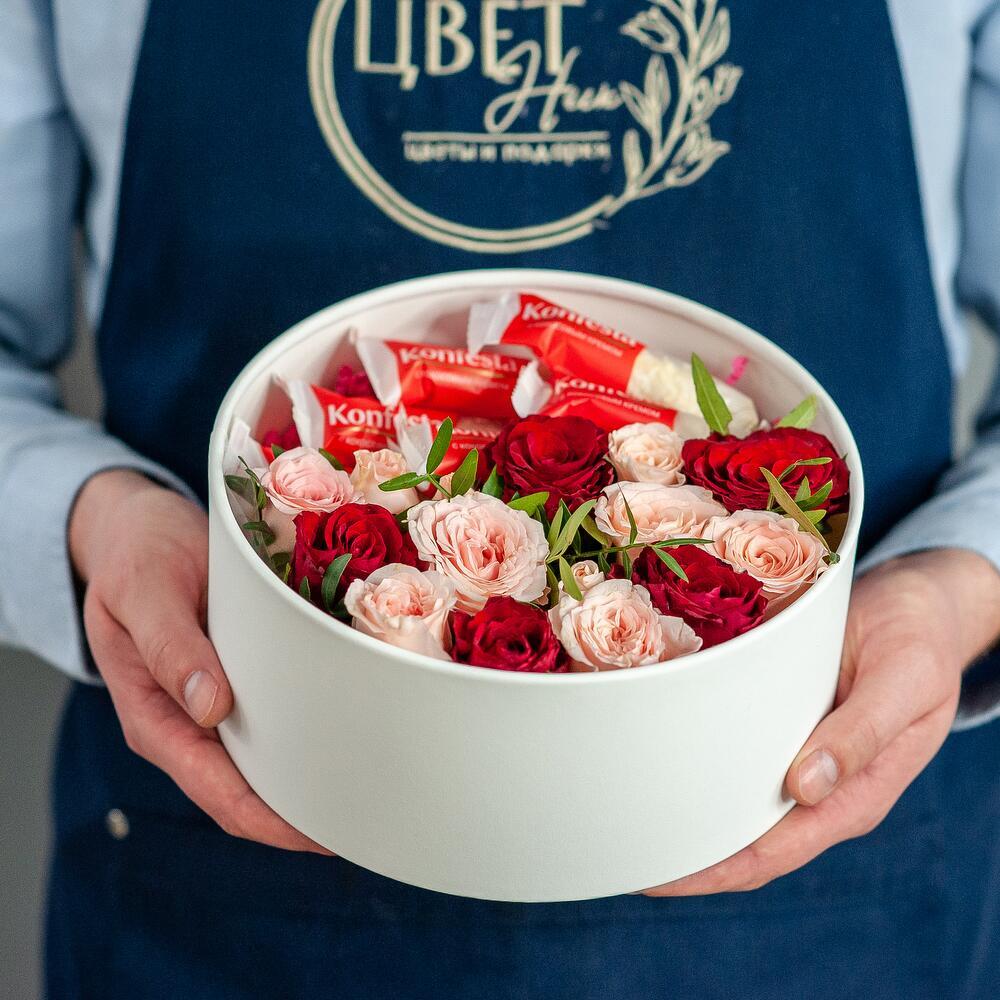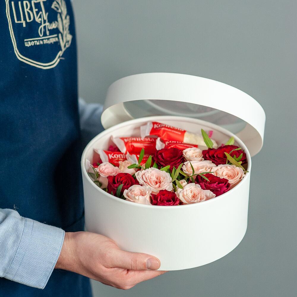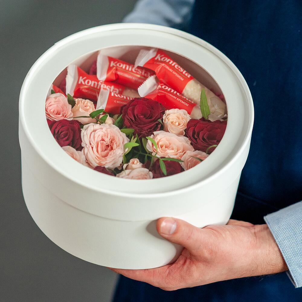 Коробка c цветами и конфетами