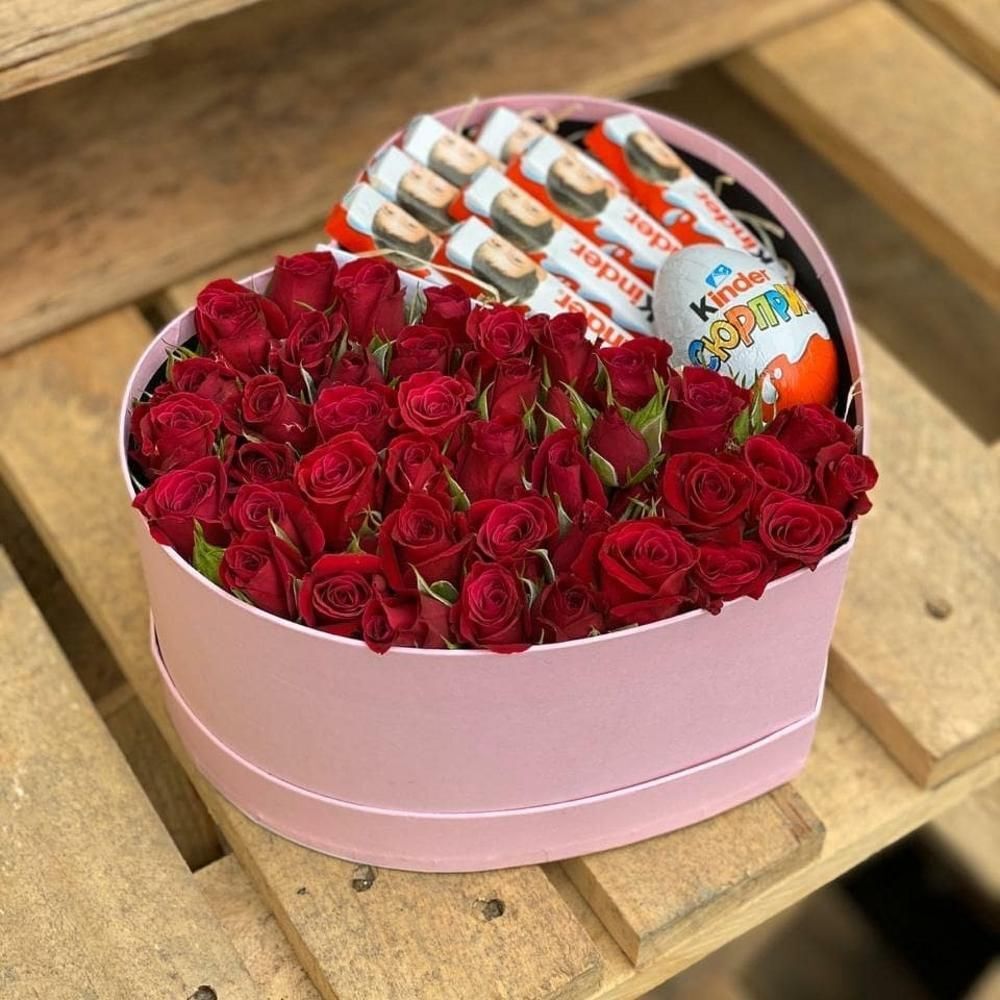 Приятный подарок ребёнку или девушке. Розы, собранные во флористическую губку, долго будут радовать своей свежестью