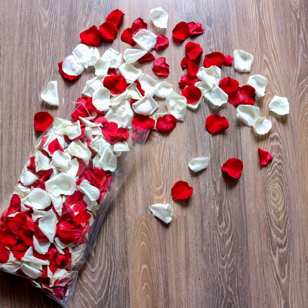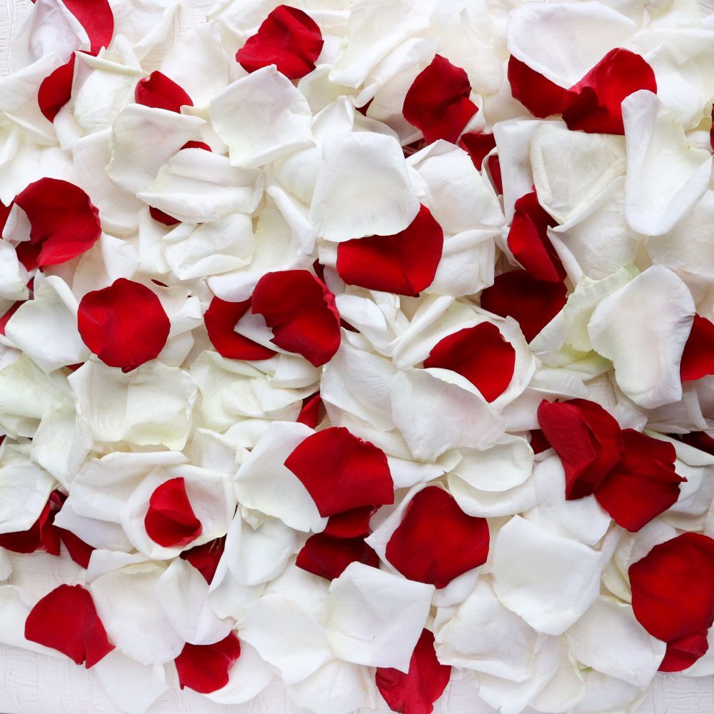 Свежие лепестки рбелых и красных роз для праздника или оформления мероприятий.