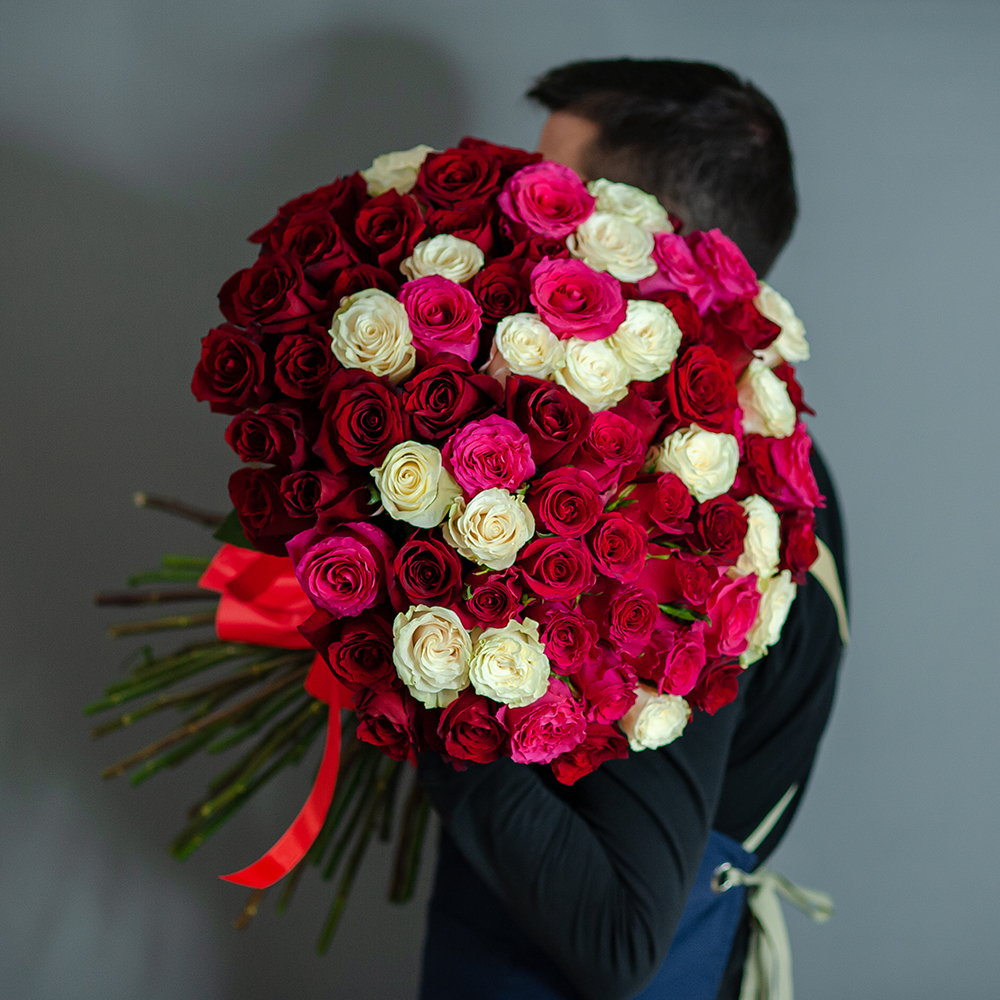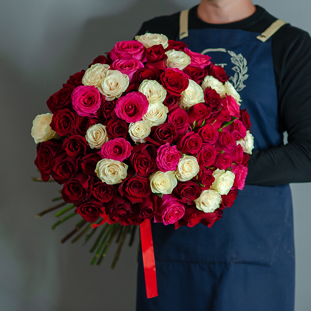 Ищете уникальный и роскошный подарок? Представляем вашему вниманию наш изысканный микс из 75 роз Эквадор — сочетание ярких красного, нежного белого и стильного малинового цветов, аккуратно перевязанных элегантной лентой. Этот великолепный букет станет идеальным символом любви, восхищения и благодарности на любой праздник или особое событие. Каждая роза в нашем букете отбирается с особым вниманием к качеству, что гарантирует их свежесть и красоту. Мы предлагаем доставку по всему региону, обеспечивая вам полноценный комфорт при заказе. Позвольте себе и своим близким насладиться великолепием этого букета, который не оставит никого равнодушным! Выберите качественно оформленный букет, который подчеркнет ваши чувства и подарит радость. Закажите микс из 75 роз прямо сейчас и поднимите настроение своим родным!
