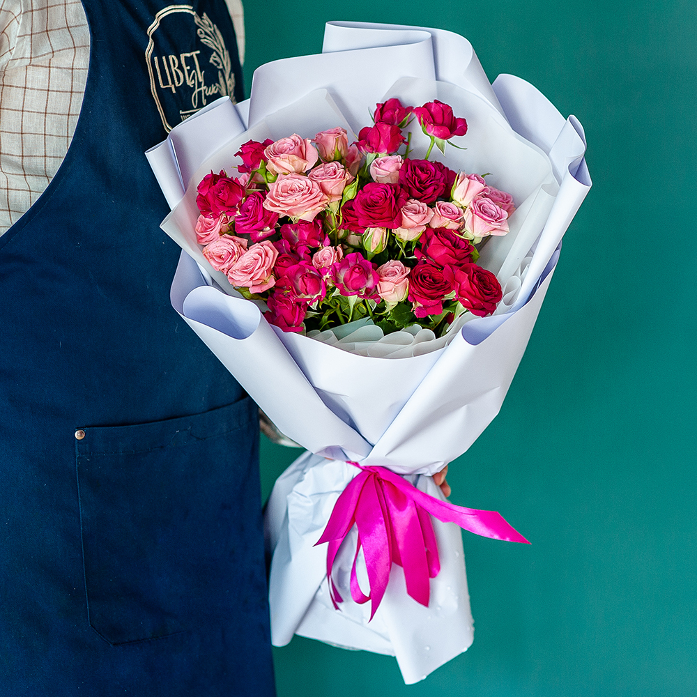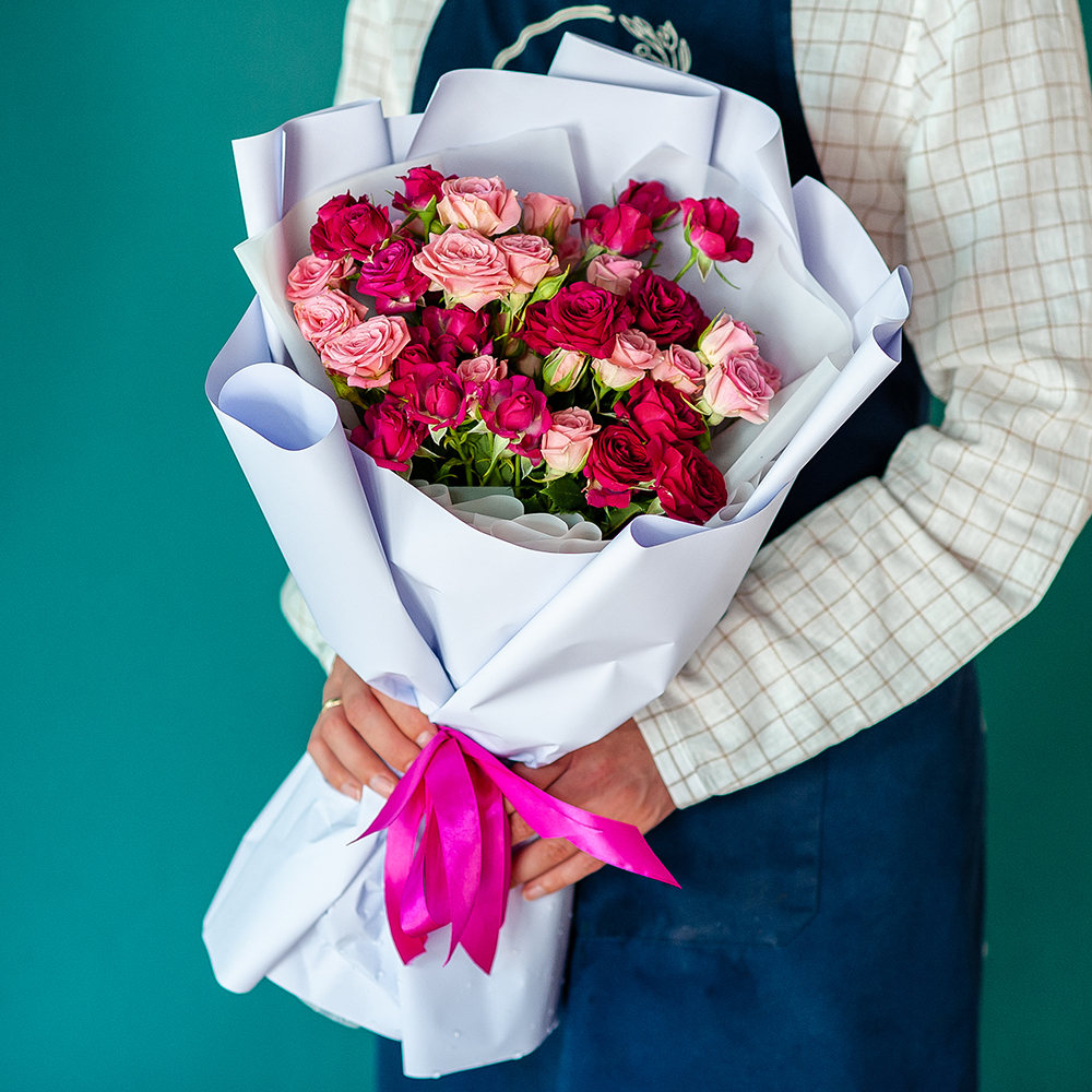 Букет «Романтика» – нежность в каждом лепестке Побалуйте своих близких роскошным букетом из нежных розовых и насыщенных малиновых кустовых роз. Этот изысканный цветочный ансамбль станет прекрасным подарком на день рождения, юбилей, свадьбу или просто для выражения нежных чувств. Состав: кустовые розы розовых и малиновых оттенков Оформление: стильная упаковка в пастельных тонах с атласной лентой Повод: идеален для любимых, коллег и друзей Доставка: быстрая доставка по Рязани Закажите этот элегантный букет прямо сейчас, и мы доставим его в удобное для вас время, подарив эмоции, которые останутся в сердце надолго!