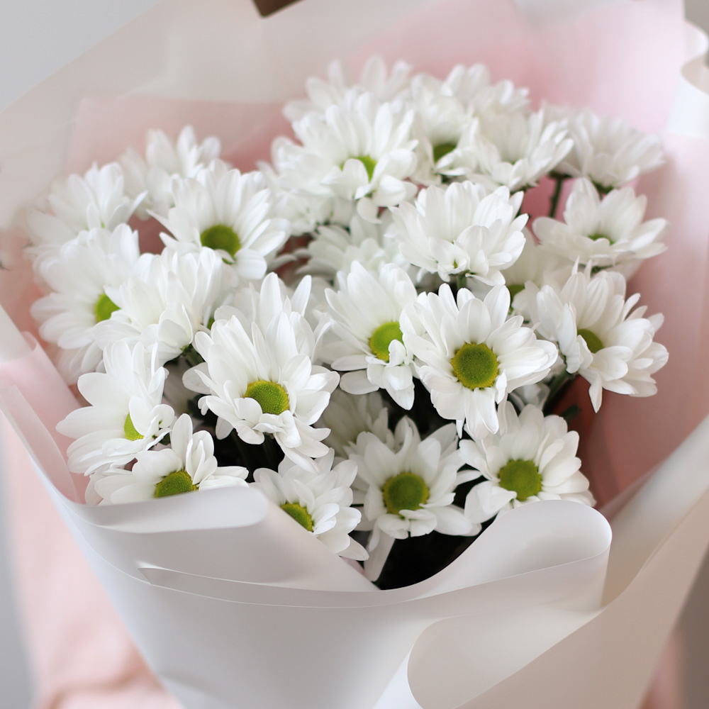 Небольшой букет комплимент из 5 веточек кустовой хризантемы в упаковке Комплимент из хризантемы - это небольшой, но стильный букет, который станет отличным дополнением к любому празднику или событию. Букет состоит из 5 веточек кустовой хризантемы, что придает ему особую нежность и изящество. Белые цветы выглядят свежо и элегантно, а их приятный аромат будет радовать вас и окружающих. Выбирая этот букет, вы делаете приятный и значимый подарок, который будет радовать получателя своей красотой и ароматом.
