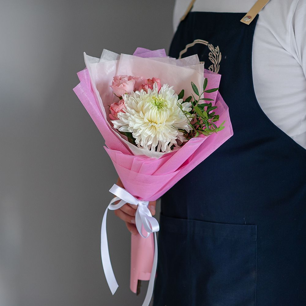 Минибукет с одноголовой хризантемой