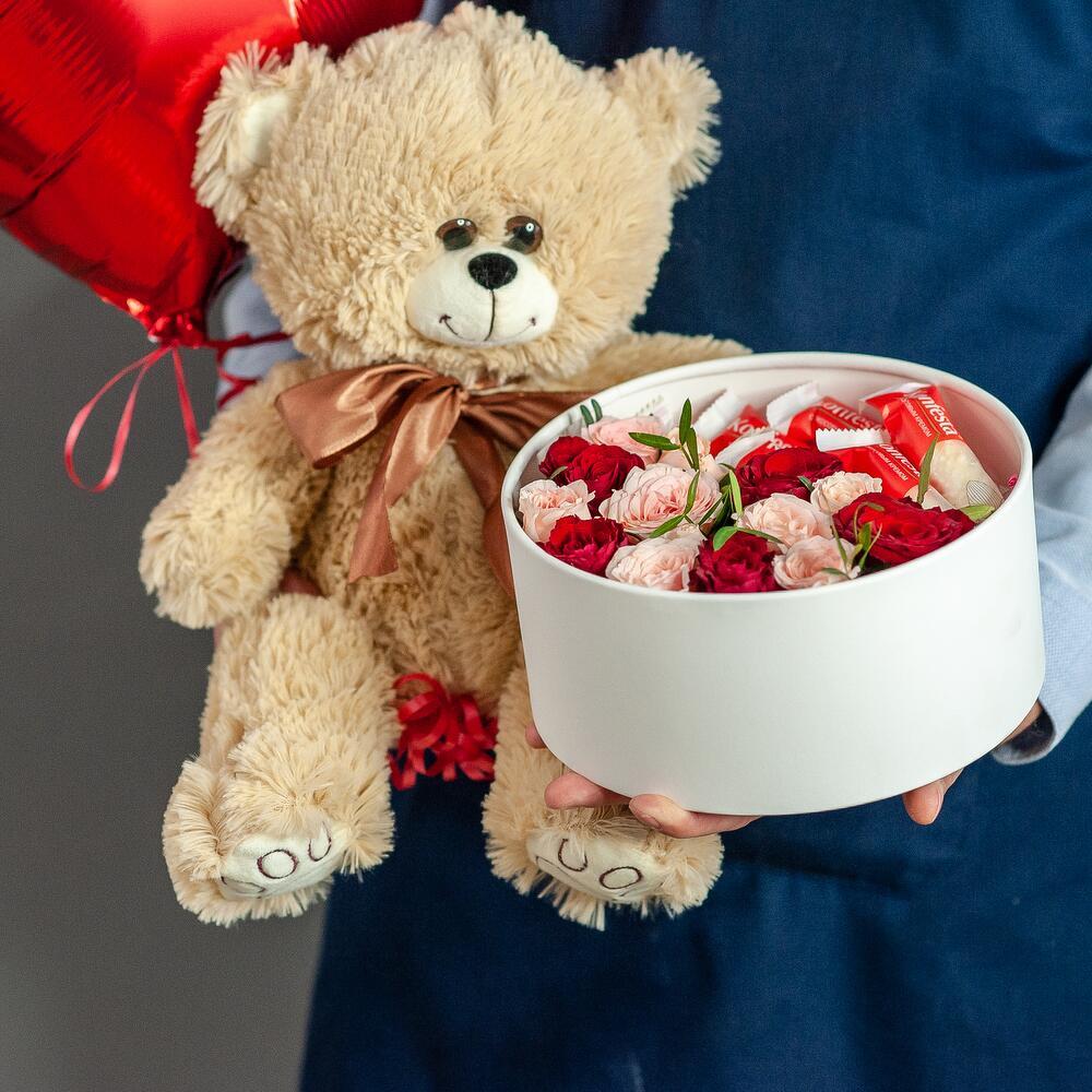 Набор "Сюрприз с любовью" – идеальный подарок с доставкой по Рязани! Порадуйте любимого человека стильным и трогательным подарочным набором, который наполнен романтикой и заботой. В комплект входит: Красный воздушный шар в форме сердца – символ вашей любви и признательности. Милый плюшевый мишка с атласным бантиком – приятный и уютный сувенир, который поднимет настроение. Элегантная коробка с цветами и сладостями – утонченное сочетание свежих роз и изысканных конфет. Этот подарок станет отличным сюрпризом на День рождения, 14 февраля, годовщину или просто как способ выразить свои чувства. Мы с заботой доставим его в любую точку Рязани! Оформите заказ прямо сейчас и подарите радость вашим близким!