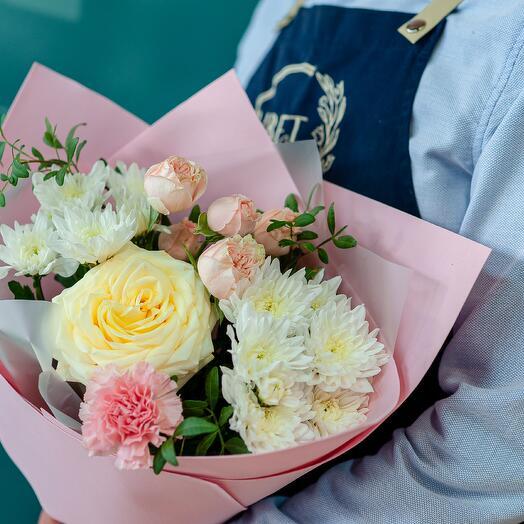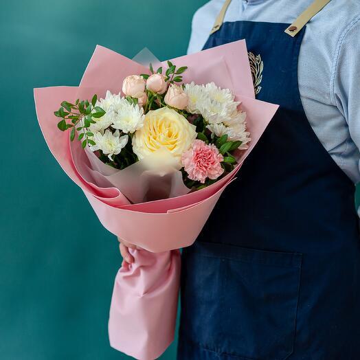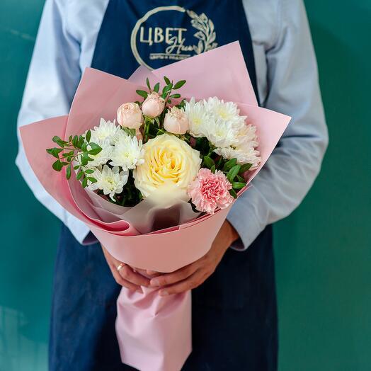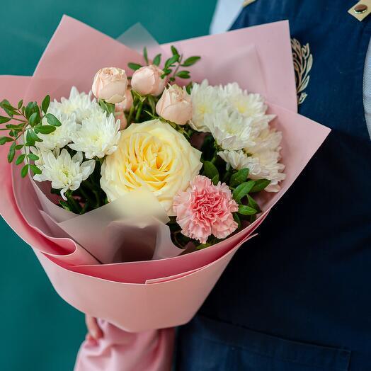 Недорогой, но очень красивый букет из кустовой хризантемы, диантуса и кустовой розы! Этот букет станет прекрасным выражением вашей любви, уважения и благодарности родным и близким. Он символизирует искренность, нежность и заботу. А благодаря доставке цветов по Рязани, вы сможете порадовать своих близких, даже находясь на расстоянии. Наши опытные флористы соберут для вас букет, который будет идеально соответствовать вашим пожеланиям и предпочтениям. Мы заботимся о каждом клиенте, поэтому наши букеты всегда свежие и красивые. Не упустите возможность сделать приятный сюрприз своим близким, заказав букет с доставкой цветов по Рязани! Мы гарантируем быструю и надежную доставку, а также доступные цены на наши товары. Сделайте заказ прямо сейчас и наслаждайтесь счастливыми улыбками своих близких!