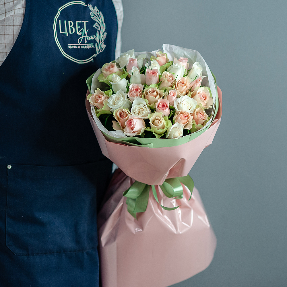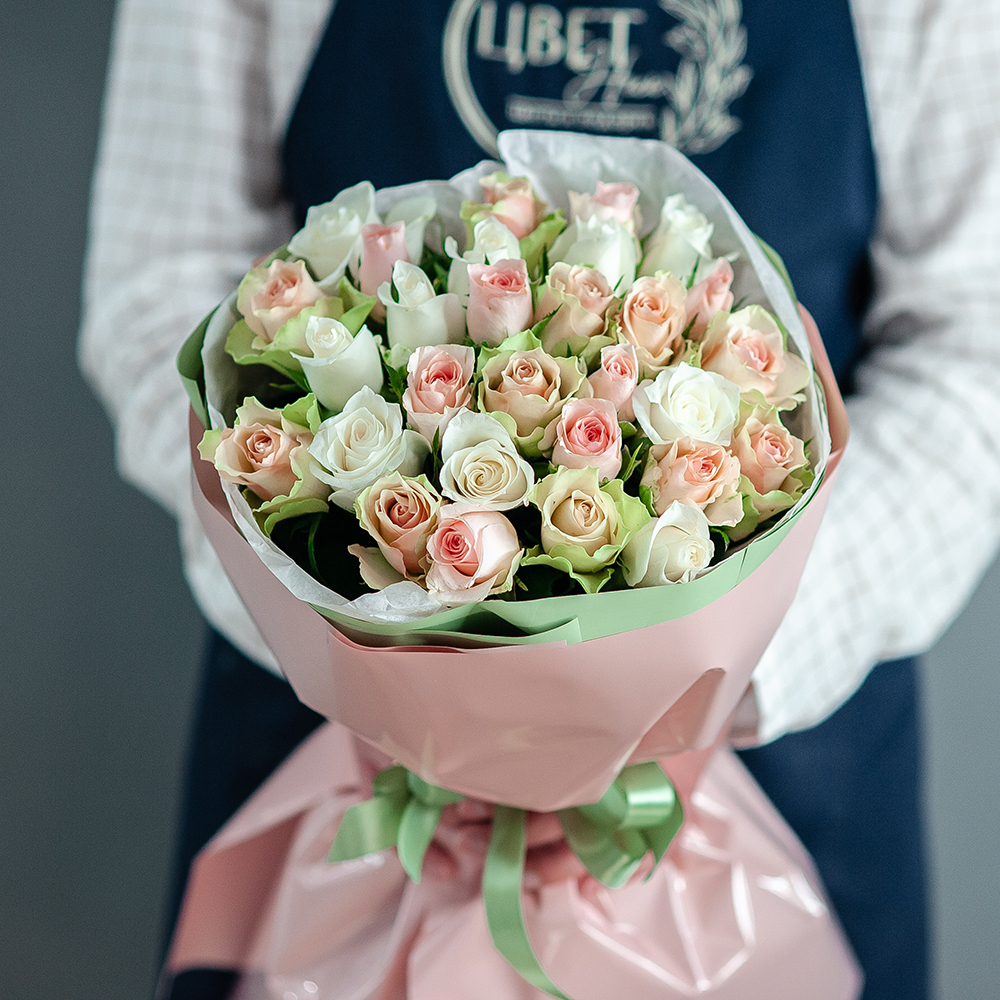 Нежный микс белой и розовой кенийской розы - идеальный выбор для истинных ценителей красоты! Этот букет сочетает в себе элегантные кенийские розы, которые порадуют своим свежестью и тонким ароматом. Закажите сейчас и получите качественную доставку в Рязани! Подходит для любых торжеств и просто так, чтобы увидеть улыбку на лицах близких. Сделайте каждый момент особенным с нашим нежным сочетанием!