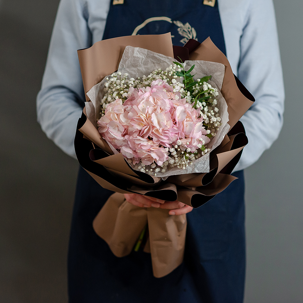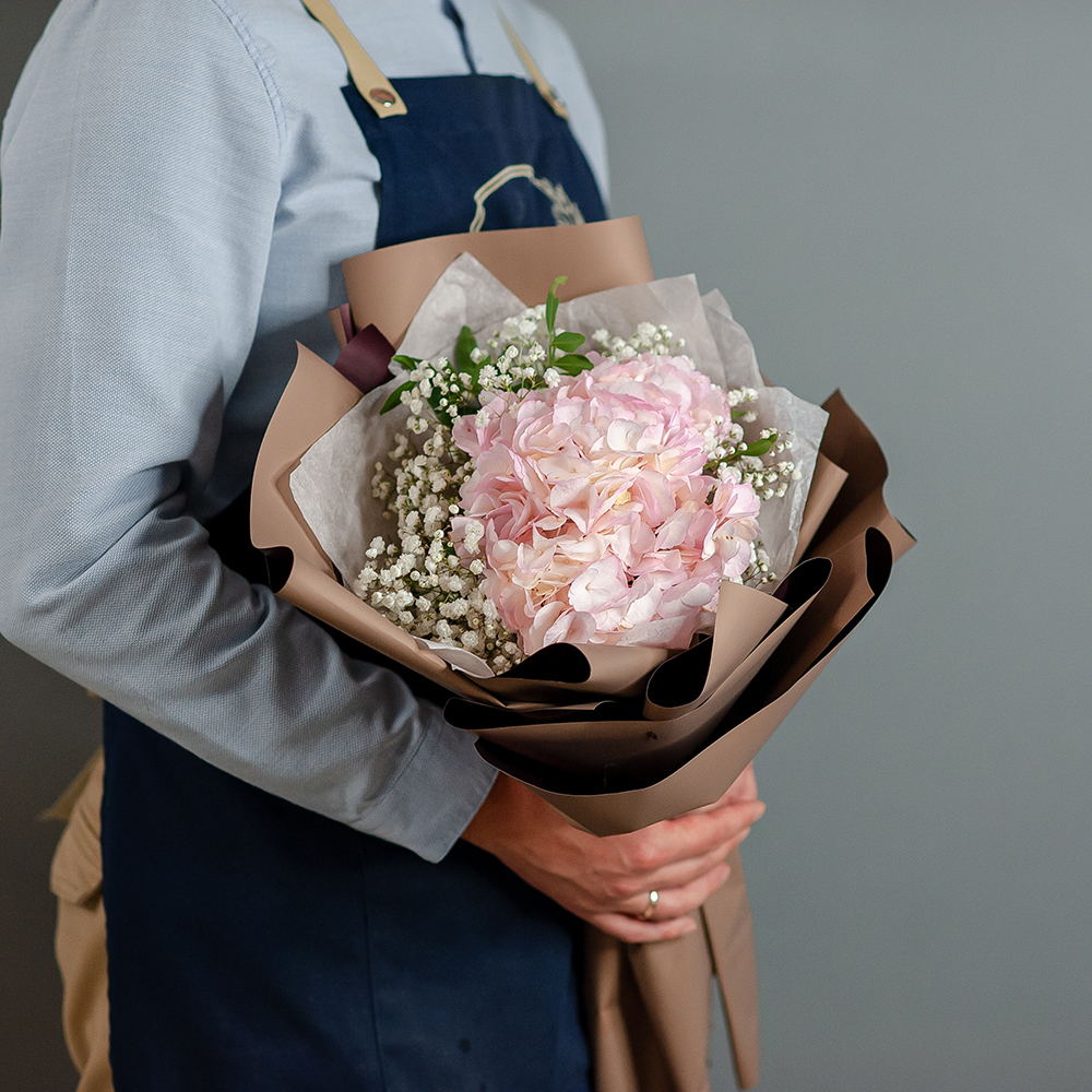 Розовая гортензия в сочетании с гипсофилой создает нежную и романтичную композицию, которая станет прекрасным украшением любого интерьера. Подходит для различных торжественных мероприятий и домашнего декора, добавляя нотку элегантности и природной красоты. Подарите радость и волшебство с нашей композицией из розовой гортензии и гипсофилы. Этот стильный букет станет великолепным выражением ваших чувств и уважения к особому событию или просто как способ порадовать себя и своих близких!