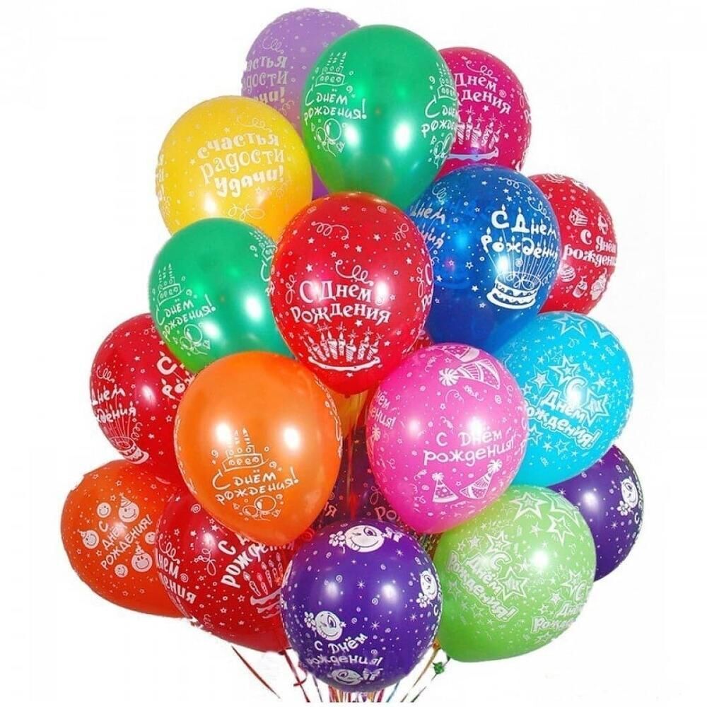 Сет из 10 шаров ассорти с надписью "С Днем Рождения"