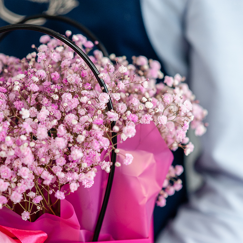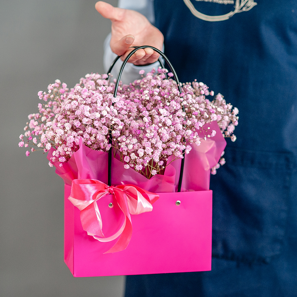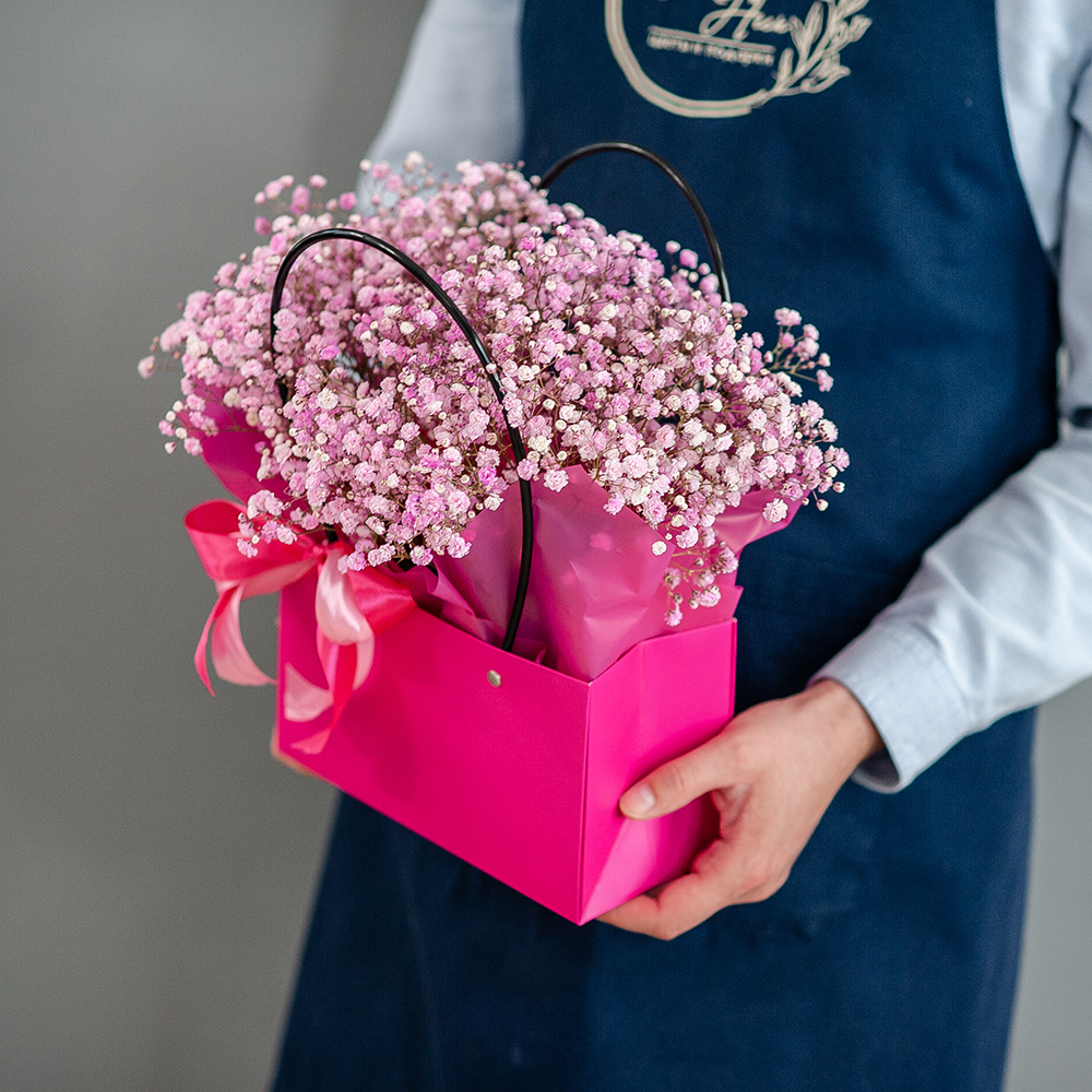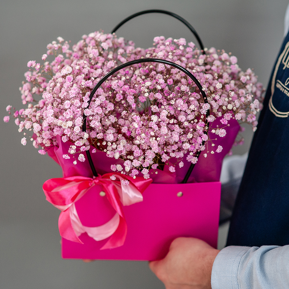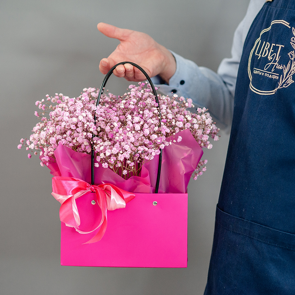 Нежная цветочная композиция в стильной упаковке Подарите радость и нежность с нашей изысканной композицией из воздушной гипсофилы! Легкие розовые соцветия создают ощущение невесомости и романтики, а стильная упаковка с изящными ручками и лентой добавляет утонченности. Особенности: Воздушные розовые гипсофилы Оригинальная коробка в стиле мини-сумки Идеальный подарок для любого случая Доставка по Рязани — быстро и удобно! Закажите сейчас и порадуйте близких стильным цветочным сюрпризом!