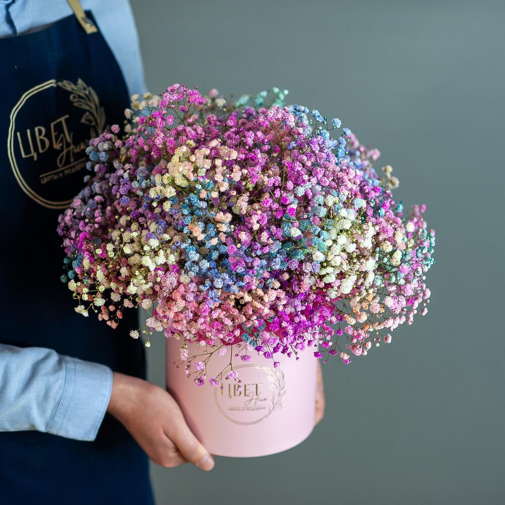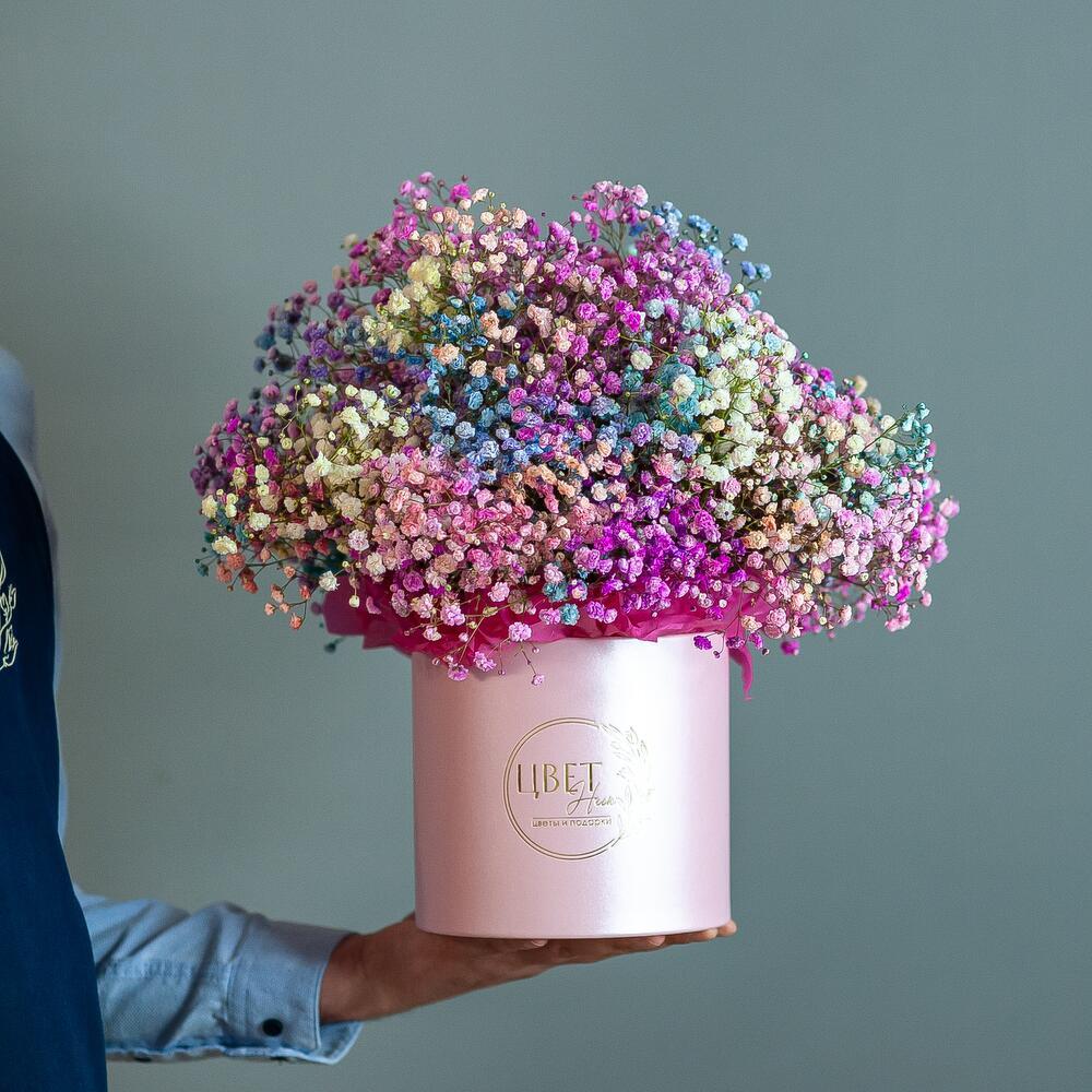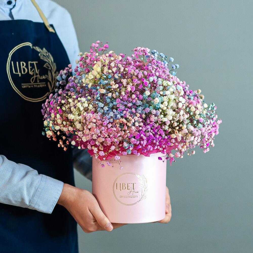 Хотите порадовать своих близких ярким и стильным подарком? Наша сеть магазинов ЦветНик предлагает подарочные коробки шляпные с гипсофилой - роскошным дополнением любого презента. Эта растительность известна своей пышностью и красотой, которую невозможно не заметить. В нашем магазине ЦветНик мы используем только свежую гипсофилу высочайшего качества. Мы поможем вам оформить яркую, цветную, пышную композицию из гипсофилы, что станет романтическим перевоплощением любого подарка. Заказав подарочную коробку шляпную с гипсофилой в магазине ЦветНик, вы можете быть уверены в качестве нашей продукции, быстрой доставке и безупречном сервисе. По Вашему желанию, мы осуществляем доставку курьером быстро и вовремя, в любое место Рязани и области. Сделайте свой подарок ярким, оригинальным и запоминающимся! Обращайтесь в магазин ЦветНик. Мы заботимся о каждом клиенте и будем рады помочь вам удивить своих близких. На фото коробка с гипсофилой размер M