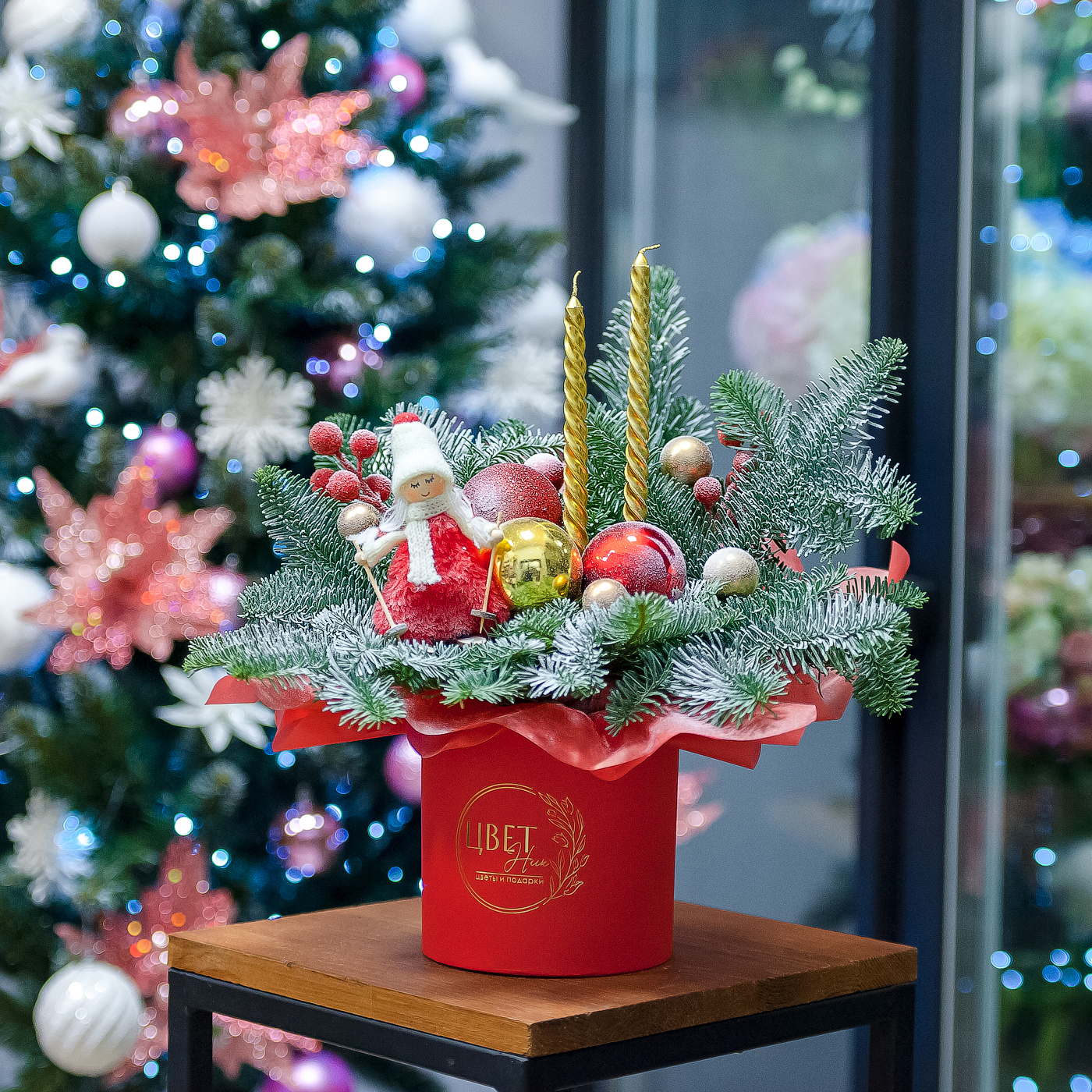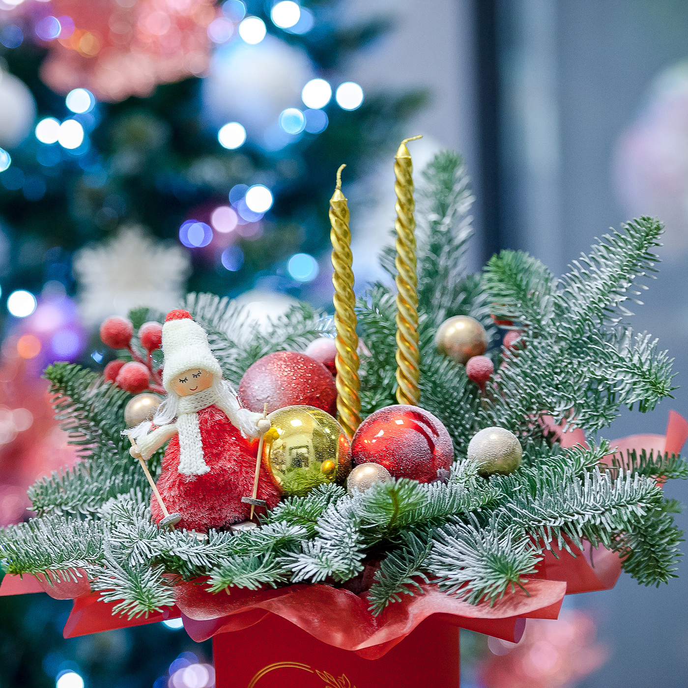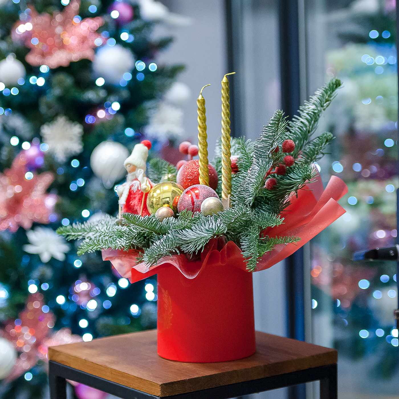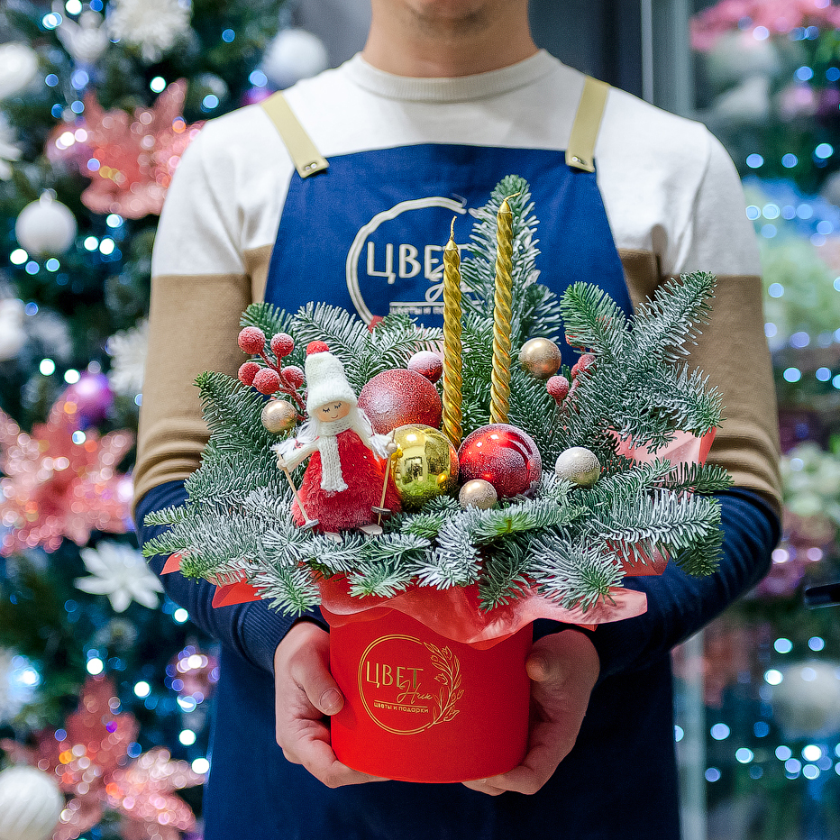 Яркая новогодняя композиция с нобилисом в красных тонах